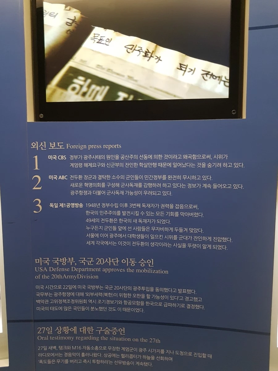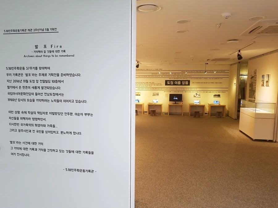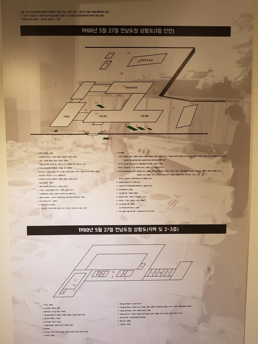 지금부터의 사진은 1층부터 6층까지 있는 4개의 전시관에 있는 5.18 관련 기록들이다.