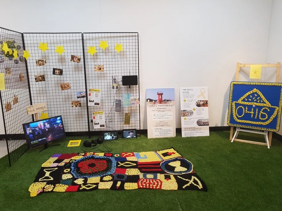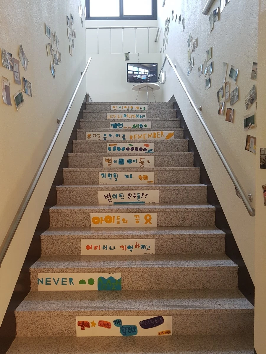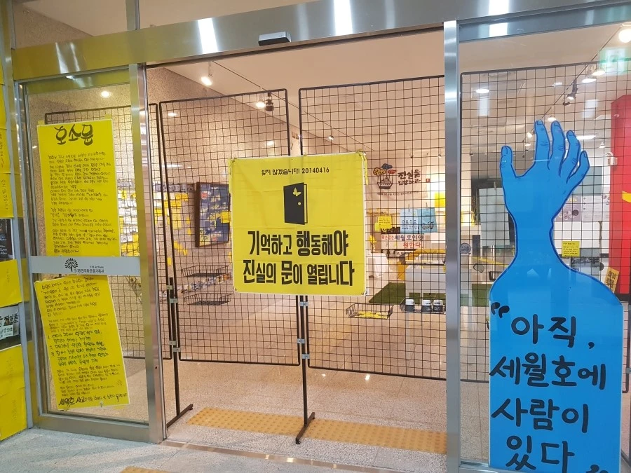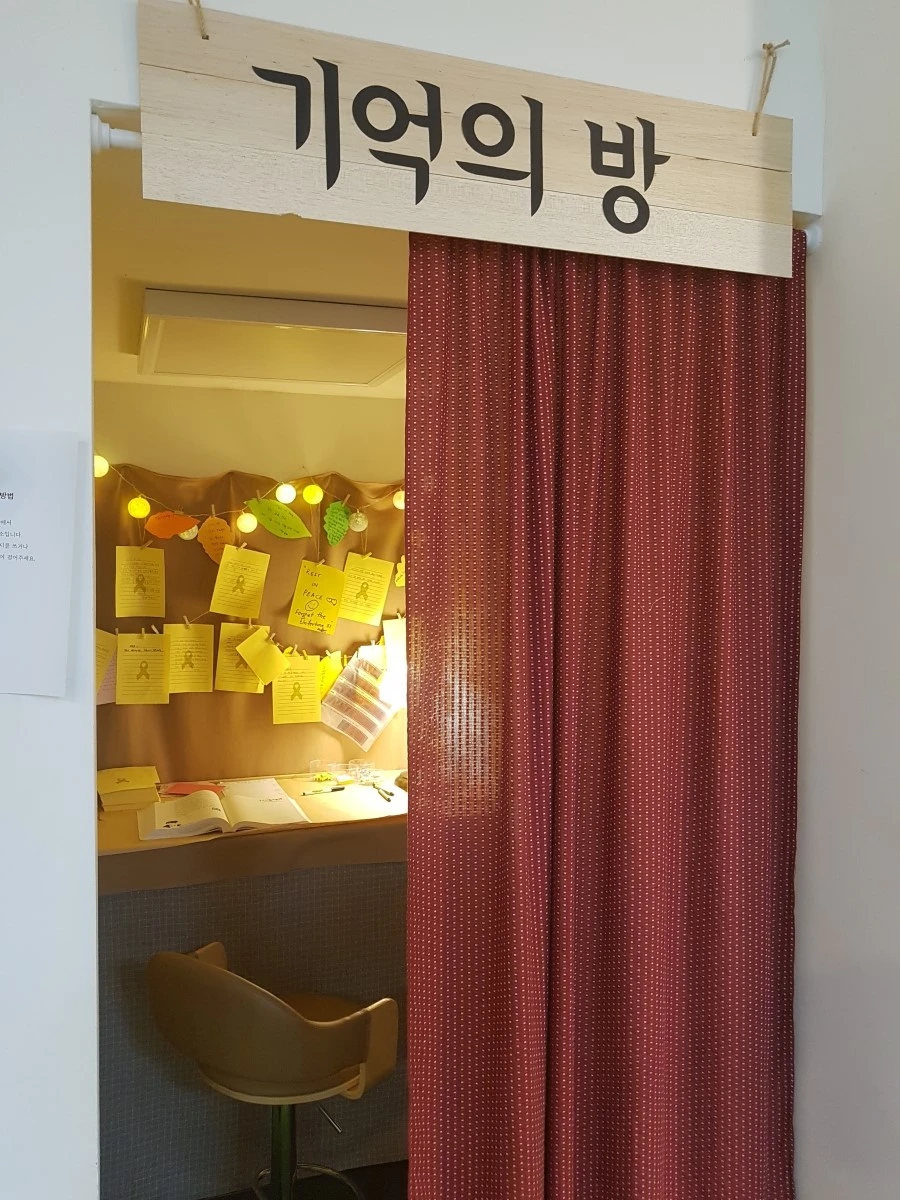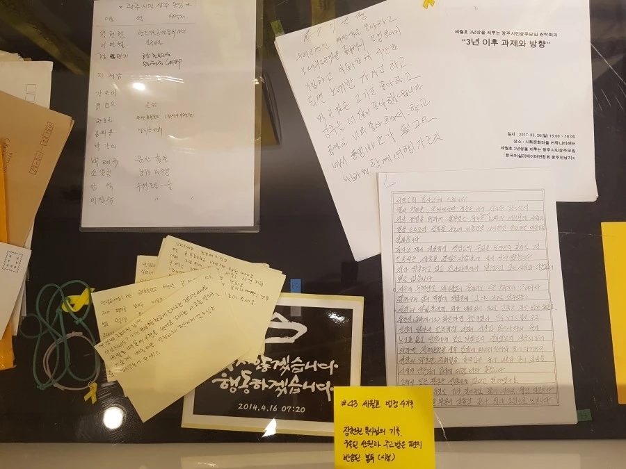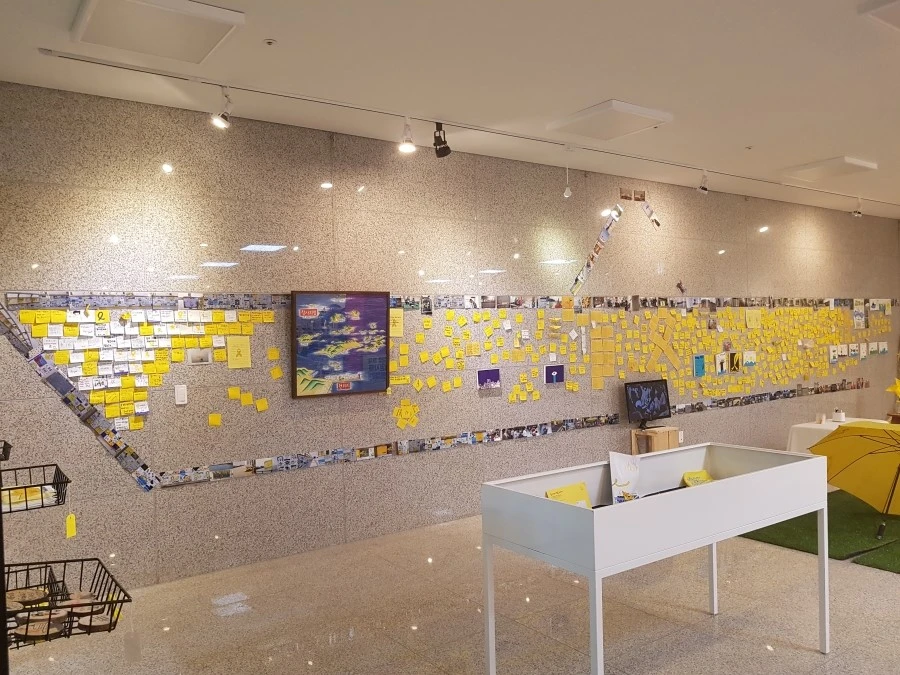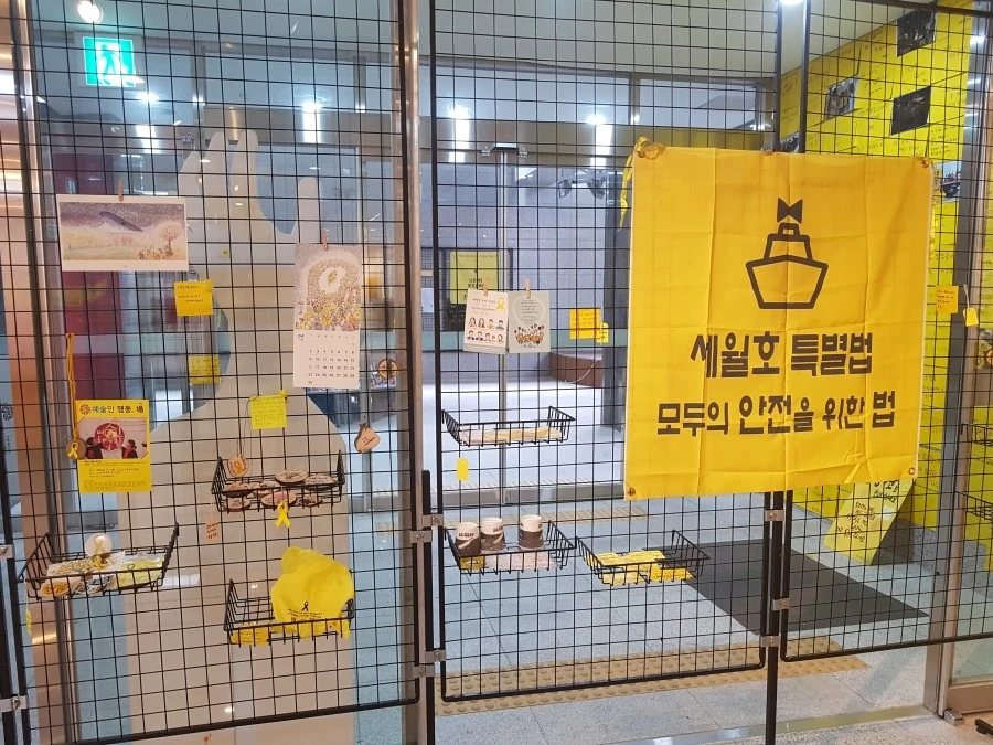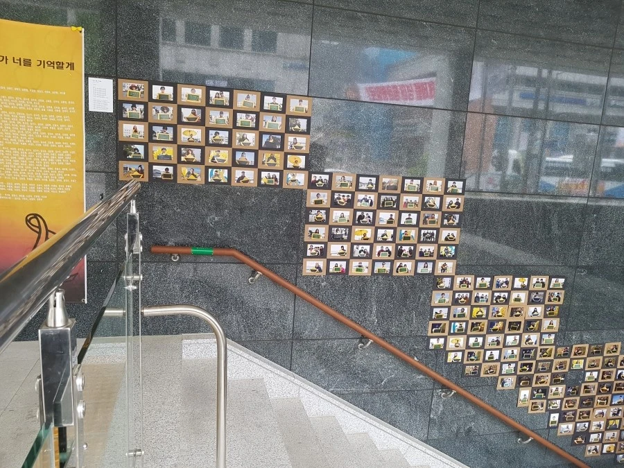계단을 내려가면 4.16 기억공간의 전시 자료들을 볼 수 있다.
