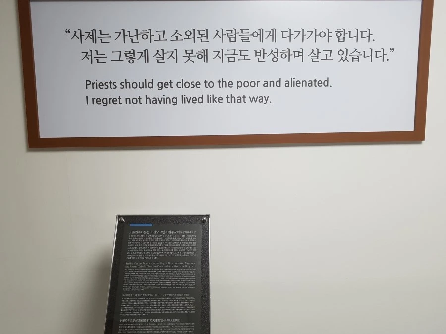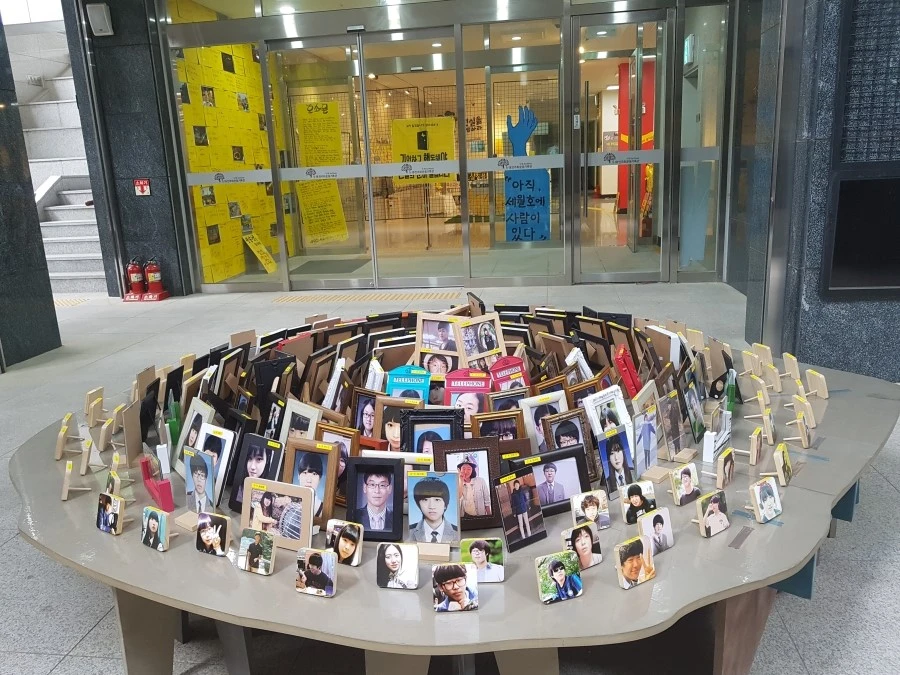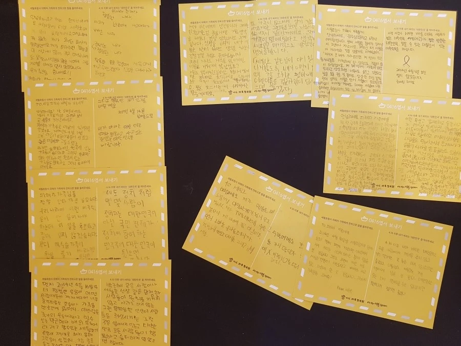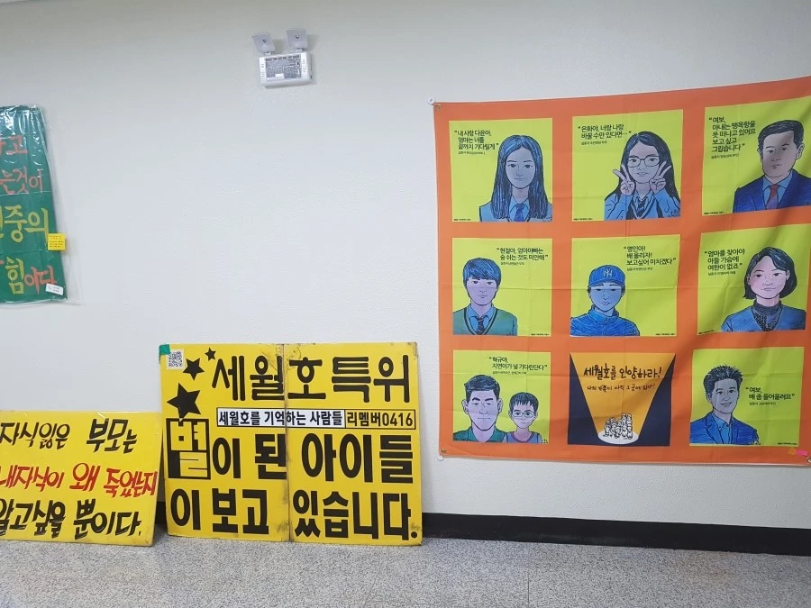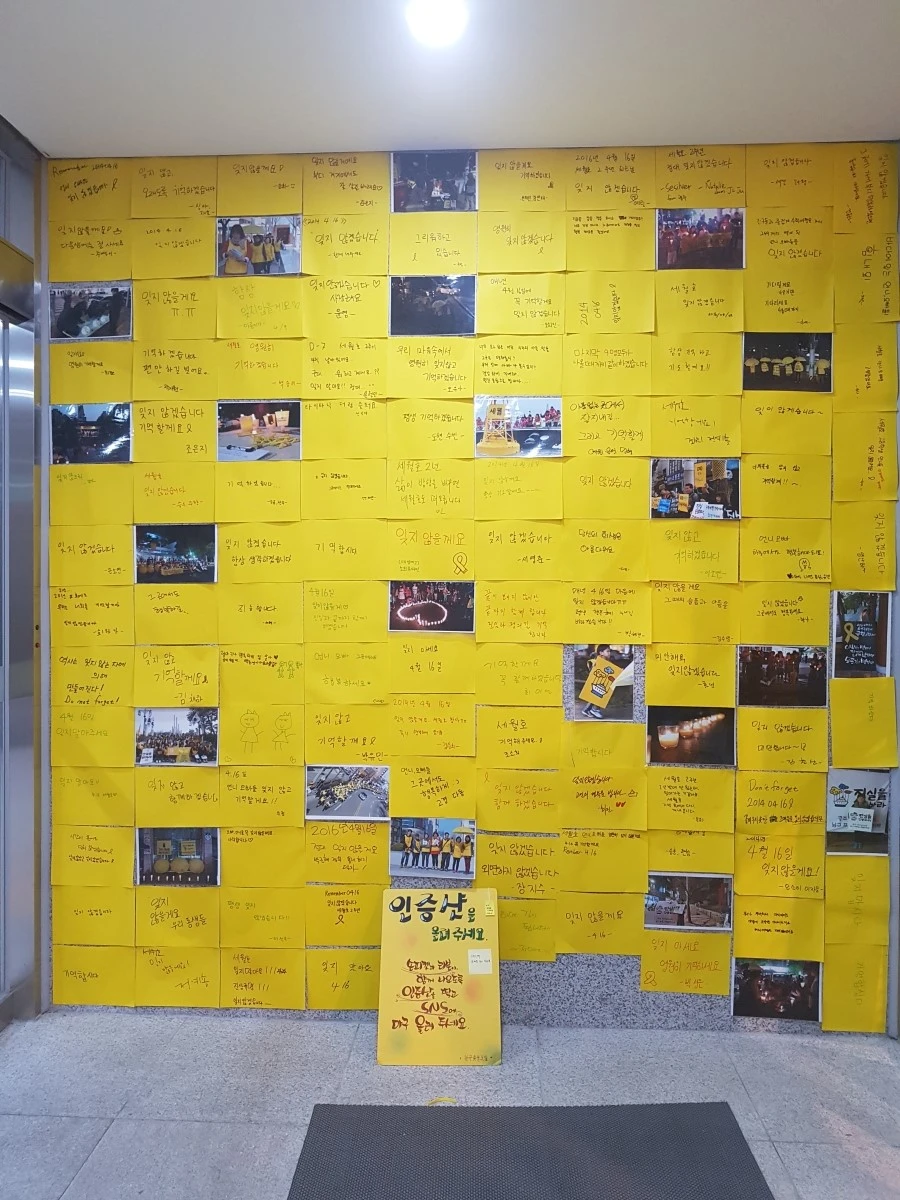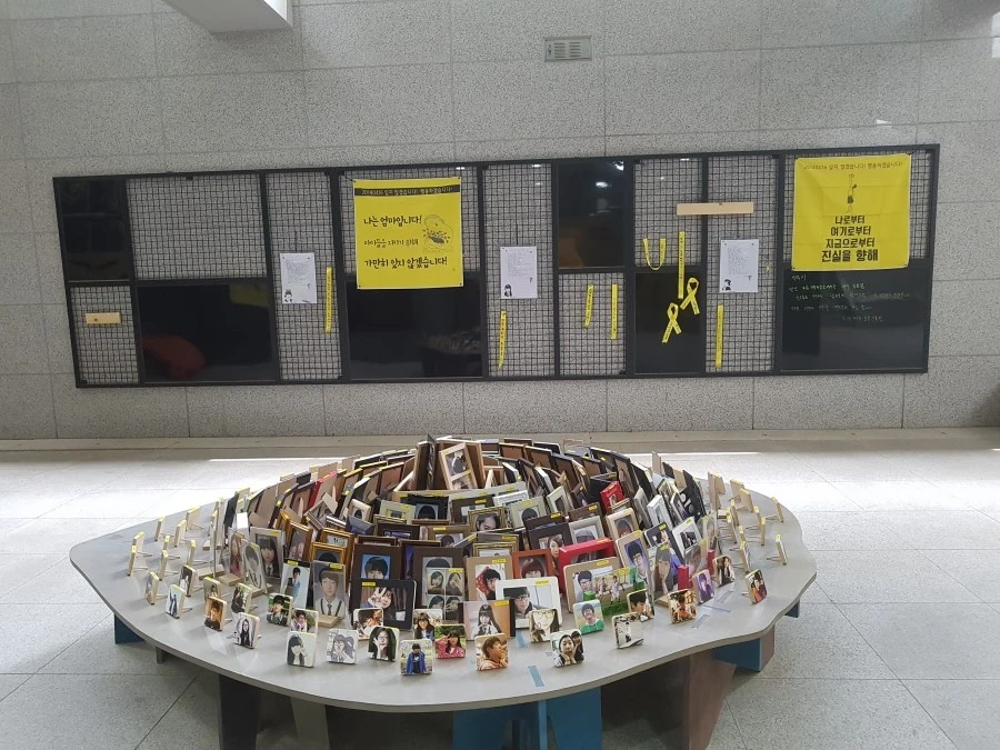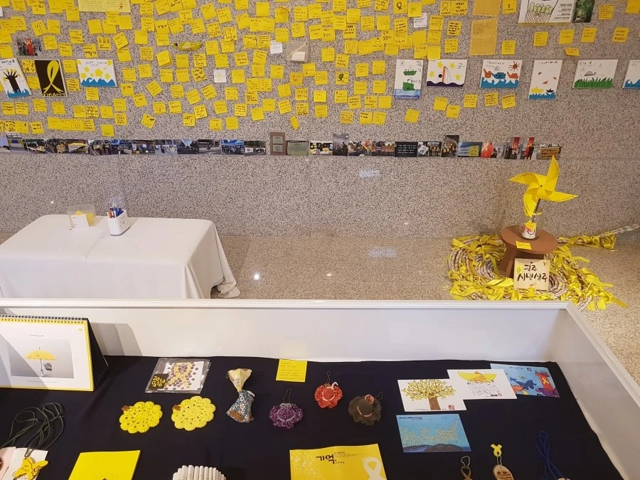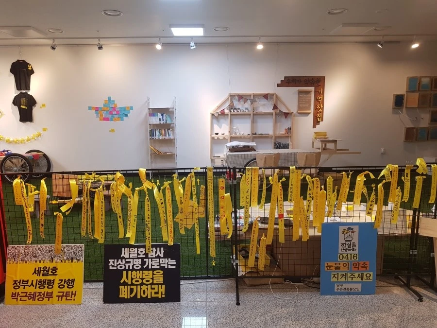 계단을 내려가면 4.16 기억공간의 전시 자료들을 볼 수 있다.