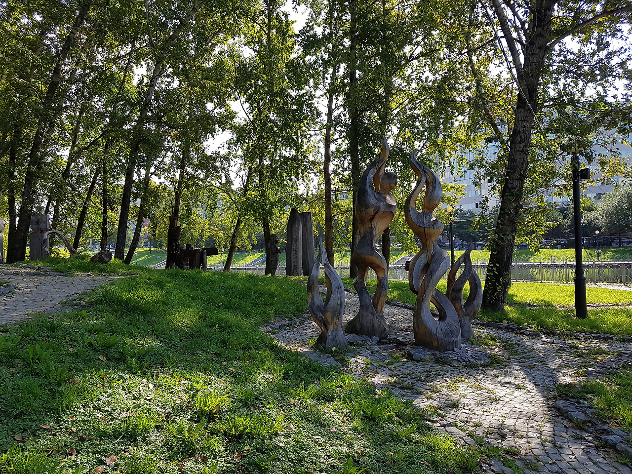하바롭스크는 공원이 많다. 길고 큰 공원이 레닌 광장을 중심으로 아무르 강까지 이어진다. 큰길을 사이에 두고 또 하나의 긴 공원이 있다. 3일째 공원을 지나는데도 처음 가보는 공원 지역이 있었다. 나무로 만든 조각들이 우리의 것과 다른 모습이다. 다르기에 볼만하다. 예술이란 영역의 작품은 그림이나 소리, 형상으로 다름을 담아내어 사람들을 생각하게 하거나 감동하게 한다. 예술가들 뿐만 아니라 세월도 거든다. 시간 속에서 예술 작품은 본래의 모습에서 다른 모습으로 변해가는 묘미를 발휘한다. 긴 역사를 지나온 작품이 고색창연한 빛을 발하는 이유는 세월에 있다. 예술작품을 대하는 또 하나의 변수는 세월 따라 사람들의 해석 또한 달라진다는 것이다. 시대에 따라 의미를 다르게 부여하고 다른 관점으로 바라본다. 결국 하늘 아래 영원불변의 것은 없다는 의미다. 생겨나고 변해가며 사라져 간다. 세상의 이치가 그렇다.