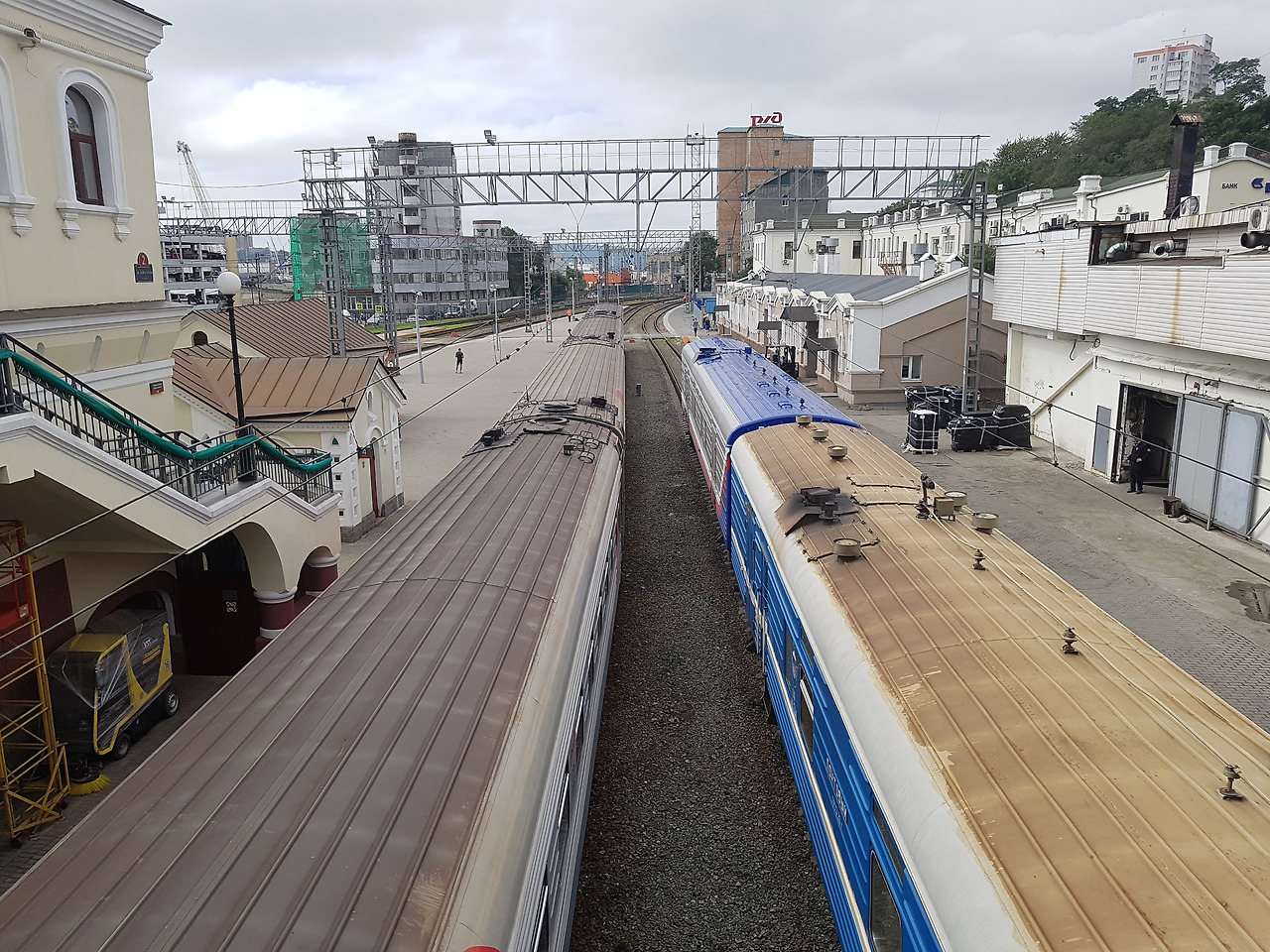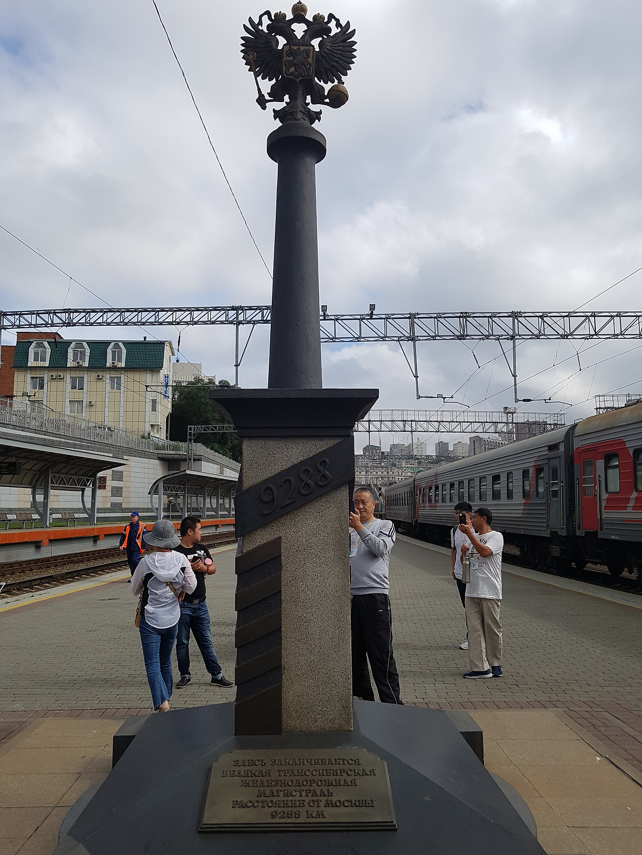 내려온 김에 기차를 타는 승강장으로 들어갔다. 승강장에는 증기 기관차가 전시되어 있다. 증기 기관차에서 가까운 곳에 시베리아 횡단철도 9,288km 지점 기념비가 서 있다. 증기 기관차는 미국에서 만들어 기증했다. 중국사람들이 몰려들더니 시끄러워지기 시작한다. 깃발을 든 사람이 여행 가이드인 듯 허리에 찬 스피커를 통해 중국어로 설명을 한다. 중국 여행객까지 시끄럽게 떠들어대니 정신이 사나워진다. 오가는 사람으로 인해 사진을 찍기도 힘들 정도다. 우리나라 말도 들리고, 일본어와 영어도 들리지만 중국어에 밀려 귀퉁이에 선 느낌이다. 1년 전 제주 우리 집에 가서 성산포 여행을 할 때 중국사람들 때문에 시끄러웠던 기억이 스쳐 지나갔다. 올봄 제주 집에 갔다 온 아내가 중국사람들이 줄어들어 조용해서 좋다 했는데, 그 중국사람들 모두 블라디보스톡으로 몰려와 있나 보다.