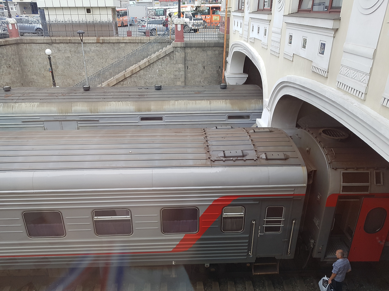 시베리아 횡단 열차에 타 보려 했는데 승무원이 막는다. 사진만 찍고 내려오면 되는데...