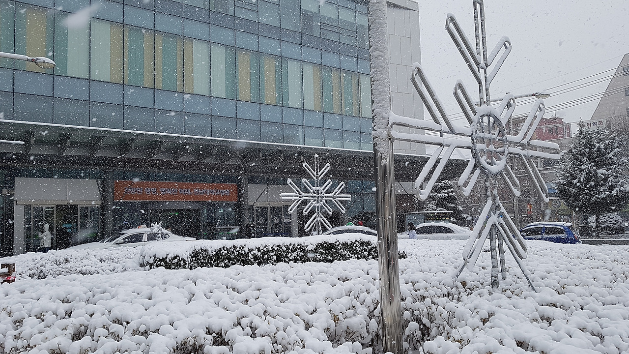 눈이 내리는 날 광주 동구 학동에 있는 전남대학교 병원을 찾았다. 병든 몸을 치료하기 위해 정기적으로 찾는 병원이다. TV에선 길이 미끄러우니 가능하면 외출을 삼가라고 했으나, 예약된 날짜에 맞춰서 병원을 찾았다. 병원을 방문하는 다른 때와 다르게 병원 앞이 수런거렸다. 내리는 눈 때문이었다. 여느 때와 마찬가지로 병원 앞에 환자를 싣고 내리는 앰뷸런스가 멈춰 서 있고, 분주히 병원을 드나드는 사람들로 붐볐지만, 다른 날과 다르게 걸음을 멈추고 병원 앞에 서서 내리는 눈을 하염없이 바라보는 사람도 있었고, 사진을 촬영하는 사람들도 있었다. 바닥에 누운 검은색 아스팔트도, 하늘을 내 달리던 검은 전선줄도 온통 하얗게 변했고, 파랗던 하늘마저 희끗희끗 날리는 눈발로 하얘진 날이었다. 휠체어를 타고 병원 유리창 너머로 내리는 눈을 바라보고 있는 환자도 있었다. 연 3일째 내리는 눈이 그 양도 많아서 눈은 그 하얌으로 온 세상을 덮어주었다. 온 세상을 덮어주는 눈이 고마웠다. 아름다움보다 추한 것들이 더 많은 도시의 추함을 순 백색 자연으로 덮어, 심신이 지친 도시인들이 며칠이나마 자연이 주는 아름다움을 만끽할 수 있게 해주었으니 말이다. 겨울이 되어도 최근 들어서는 어쩌다 한 번 눈이 내릴 뿐 어린 시절처럼 많이 내리지는 않는다. 이것도 ‘기후변화 탓인가?’싶다. 사람들이 눈이 내리는 것을 좋아하는 것은 어쩌면 자신의 어린 시절로 되돌아갈 수 있기 때문은 아닐까? 옷도 변변하게 챙겨 입지 않은 채 눈밭에서 미끄럼 타고, 뒹굴며, 천방지축으로 뛰어노느라, 정작 염려하시는 엄마 말씀을 귓등으로 듣던 어린 시절 모습을 회상하며 절로 웃음 짓는 그런 거……. 눈이 내리고 쌓인 모습을 촬영하는 사람들은 사실 자신의 어린시설을 촬영하고 있는지도 모른다.