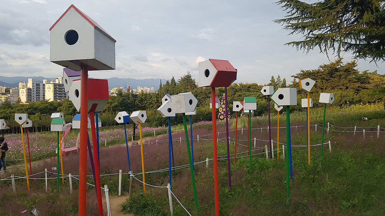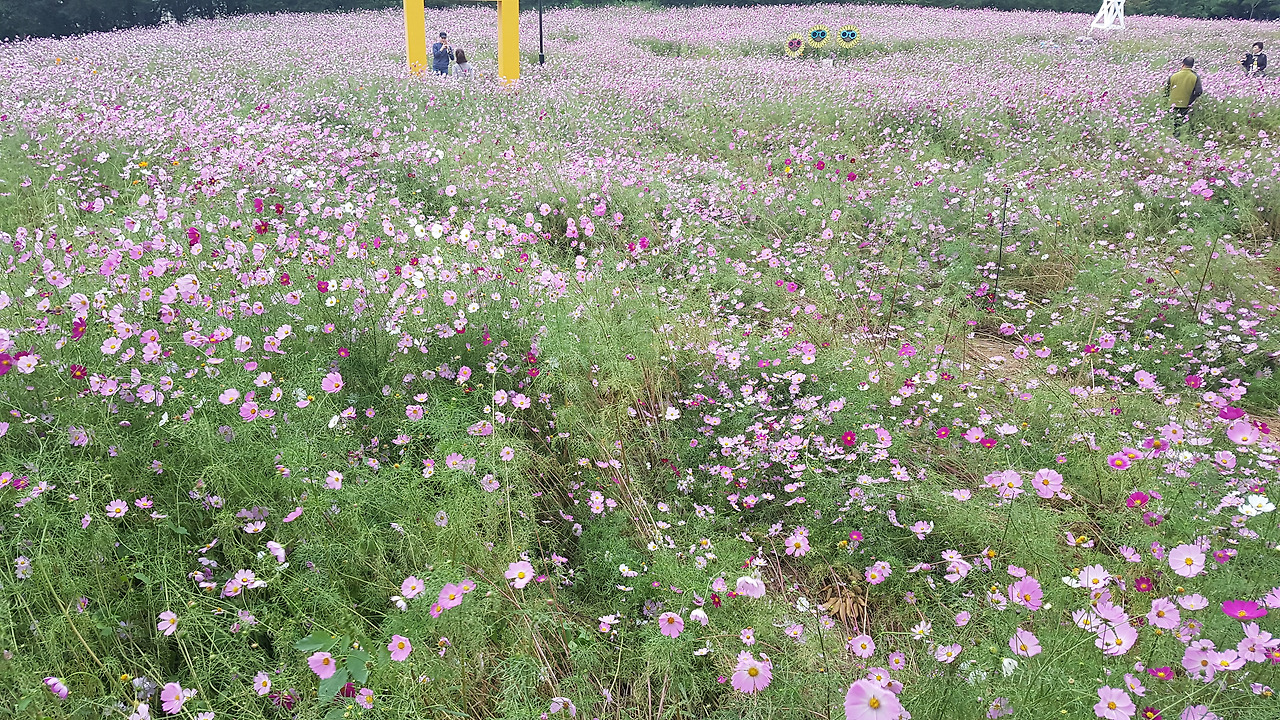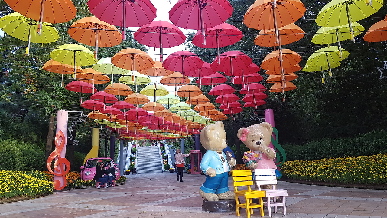 케이블카를 타고 이월드로 이동했는데, 하늘을 가리며 펼쳐진 많은 색색의 우산도 아름다웠고 꽃들도 아름다웠다. 꽃은 언제 어디서 봐도 아름답다. 작은 꽃은 작은대로 큰 꽃은 큰대로 아름답다. 무리 지어 핀 꽃들의 아름다움은 더 컸다. 사람이 꽃보다 아름답다고 하는데, 정말 그럴까? 의심이 들 정도였다. 사람들도 무리 지으면 더 아름다워질까? 꽃은 꽃을 보는 사람마저도 아름답게 한다. 그래서 다들 꽃 앞에 서서 사진을 찍는다. 아름다운 꽃에 아름다운 사람이라니... 아름다움의 절정인 셈이다. 꽃 속에 있으며 생각하니 '꽃'이란 글자도 꽃처럼 예쁘다는 생각이 들었다. 참 우리 조상님들 이름도 잘 지었다.
