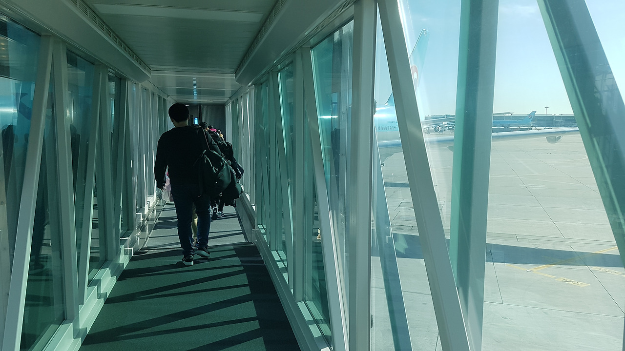 공항에서 내가 좋아하는 비행기를 실컷 보니 좋다. 볼 수록 신기한 비행기, 저 무거운 기계가 사람과 짐까지 싣고 하늘에 뜨다니, 바보가 힘만 세다. 여행 중에 확보해야 할 에너지 중 하나가 스마트폰 전력이다. 보조 배터리가 있지만 11시간 20분 넘는 비행시간이니, 채울 수 있으면 100%로 채워 두는 게 좋다. 둘러보니 대기하는 의자에 전기 콘센트와 USB 연결할 수 있도록 시설되어 있었다.