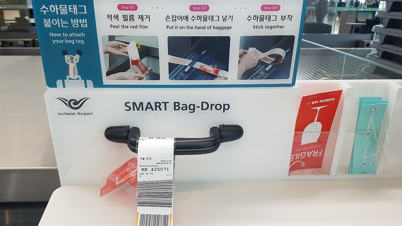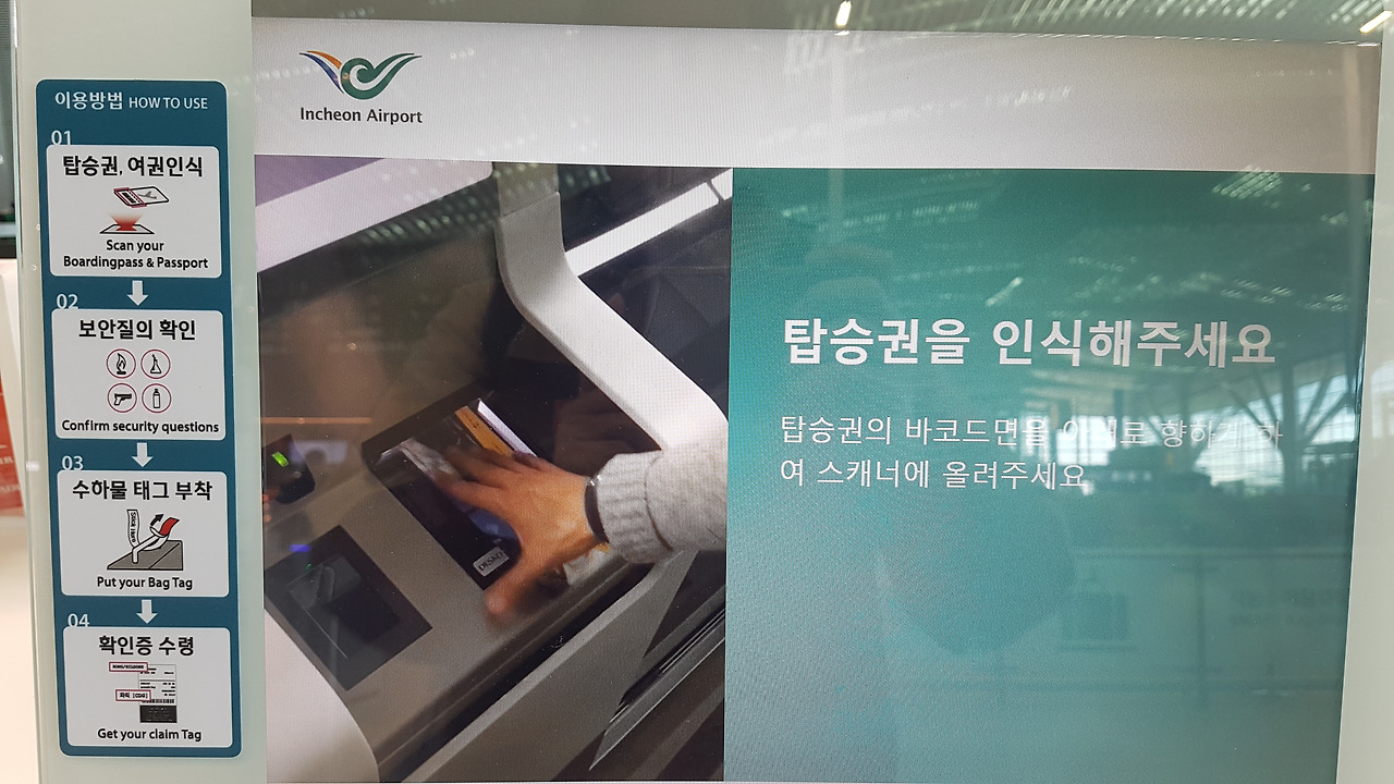 수하물 부치는 장치에서 여권 인식 장치-성공하면 위 사진의 수화물칸이 열린다.