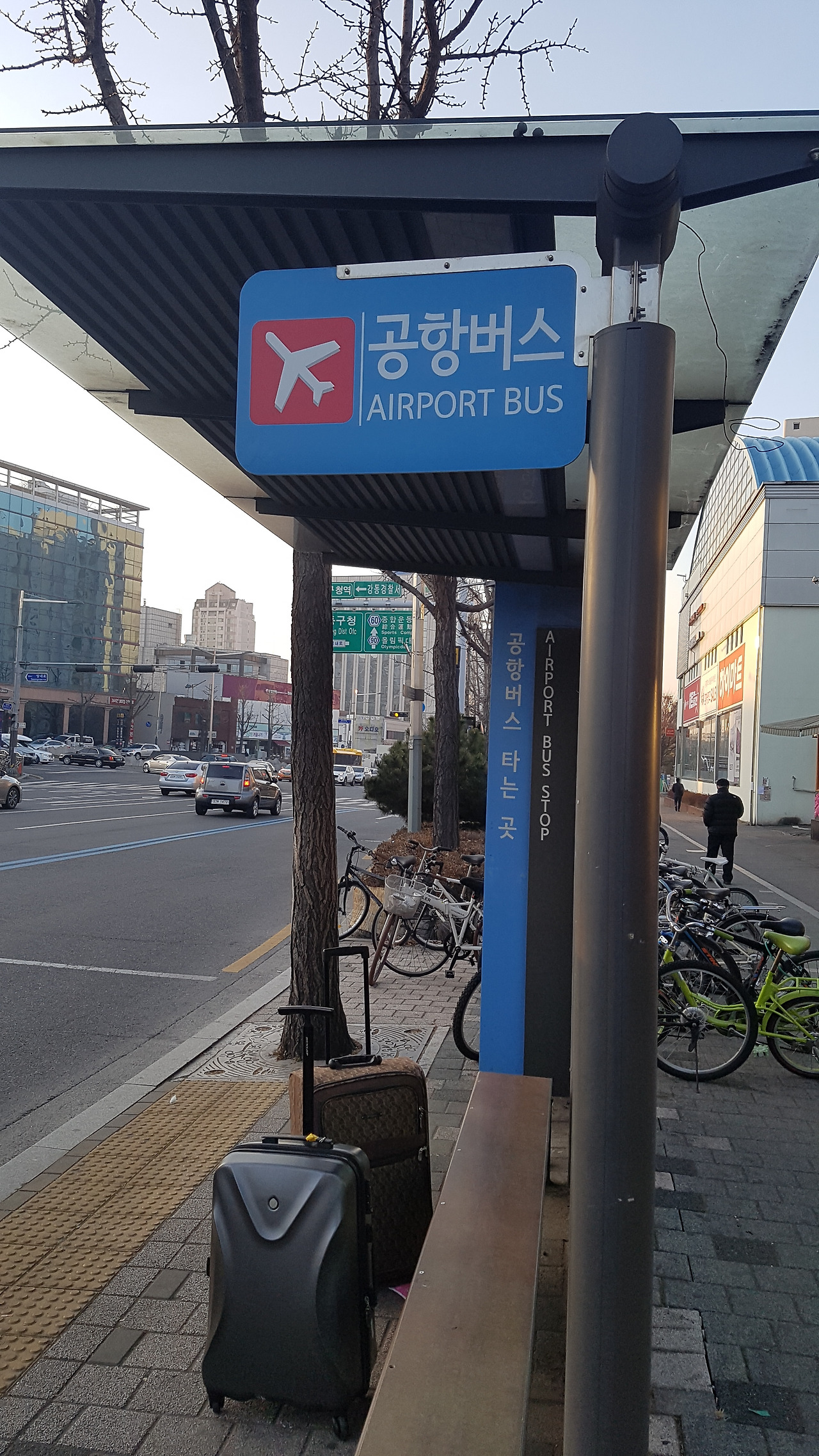 아침, 자는 아들을 깨워서 다시 한 번 여권과 환전한 돈을 확인하고, 공항리무진을 타러 강동구청 정류장으로 나왔다. 지하철을 이용하면 인천공항까지 4,350원에 1시간 48분이지만. 공항리무진을 이용하면 14,000원에 1시간 20분이 걸린다. 여행 중 다양한 경험을 쌓기위해 리무진 버스를 이용했다. 리무진 버스 비용이 현금은 15,000원이지만 카드로 계산하면 14,000원으로 1,000원이 더 싸다. 가게에서 현금으로 계산하면 카드로 계산할 때보다 더 싼데, 공항버스는 오히려 반대여서 신기했다. 그러고보니 시내버스도 현금이 비싸니, 신기한 건 아니네...