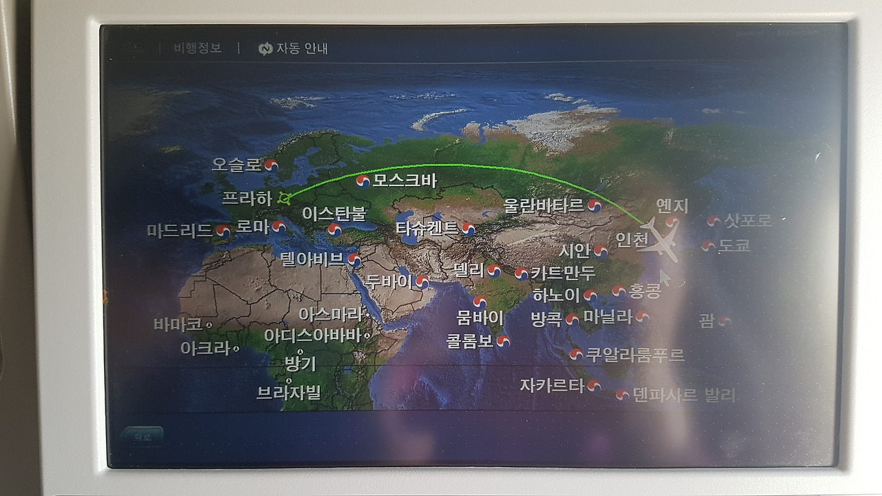 프라하행 비행기에 탑승하라고 안내방송이 나온다.