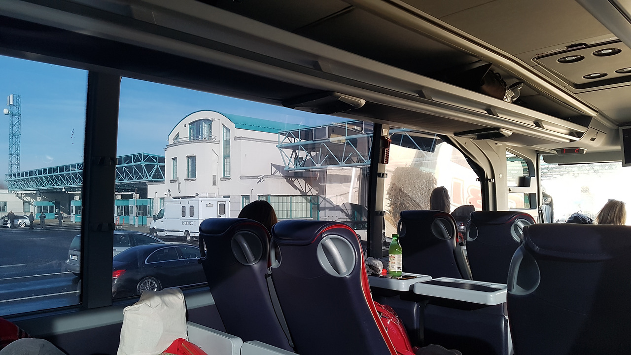 국경 검문소와 타고 온 버스