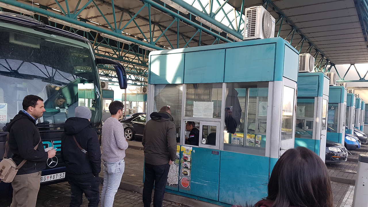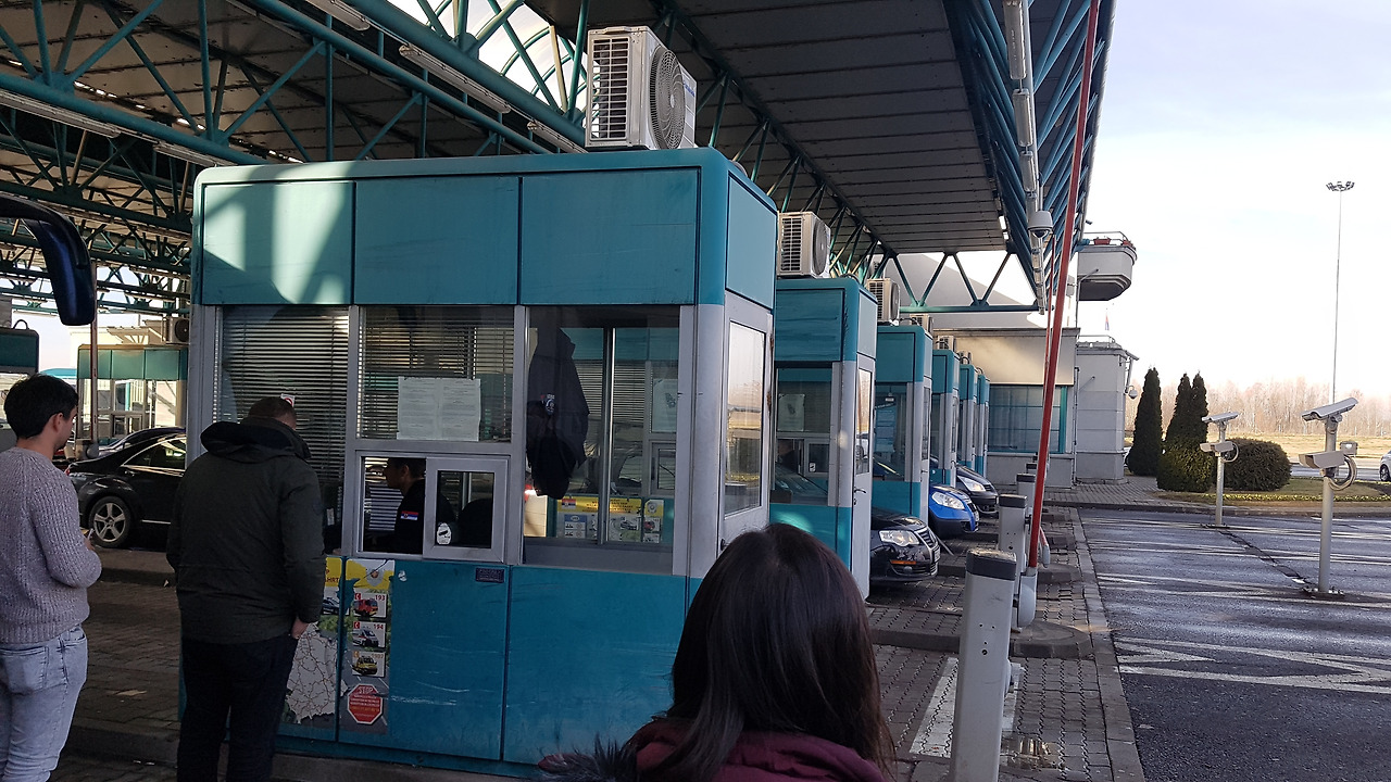 10시 30분, 버스가 다른 버스 뒤에 멈춰 선다. 고속도로에서 버스가 멈추다니? 휴계소가 아니라, 출입국 수속을 위해서였다. 우리 버스 승객이 심사받을 차례가 되자, 세르비아를 벗어나는 출국 수속을 위해 여권을 들고 내리라는 버스 안내방송이다. 탑승자 명단이 넘어가고, 출국 심사자 앞에 서서 한 사람씩 얼굴과 여권을 조회한다. 모든 승객이 출국 수속을 마치고 국경선에 서 있으면 버스가 다가와 승객을 태운다. 다시 버스가 조금 더 앞으로 이동한다. 이번에는 헝가리 입국 수속이다. 세르비아가 유로 회원국이 아니라 국경 통합이 안 되서 출국과 입국을 따로 해야 한다. 입국 수속을 하며 보니 승용차에 탄 사람들은 차에서 입국소속을 하고, 버스에 탄 사람은 내려야 한다. 예전에는 출입국 신고 때 짐검사까지 받았지만 지금은 간소화되어 짐검사는 생략이다. 유로존 국가는 입국 수속 줄이 별도로 있고 훨씬 더 간단하다.