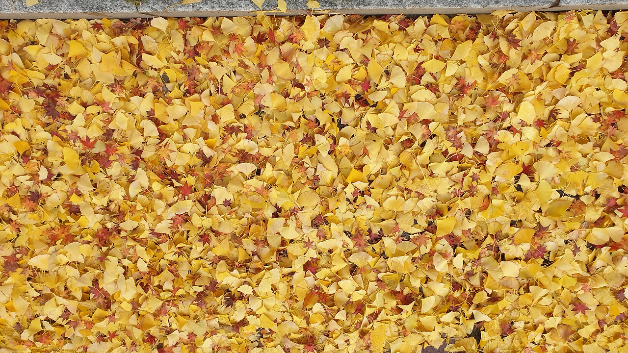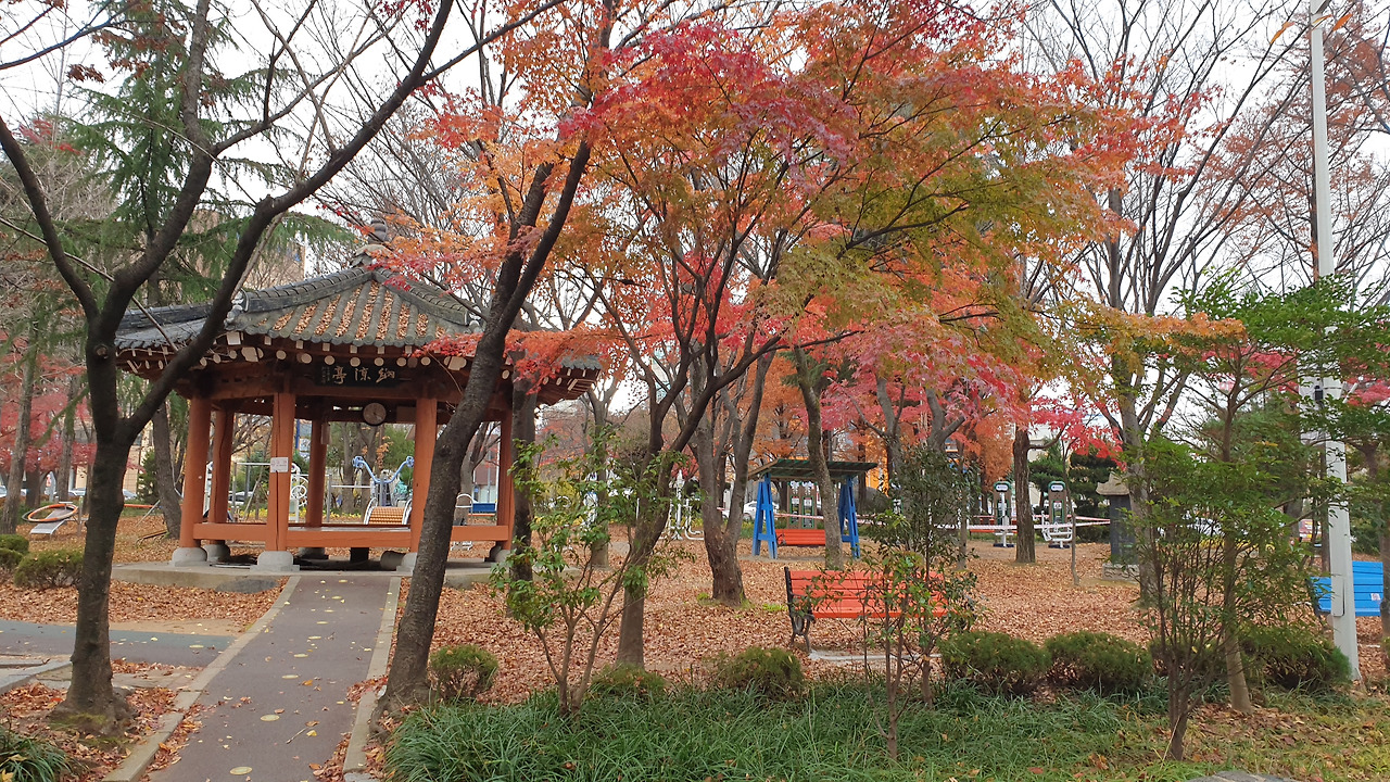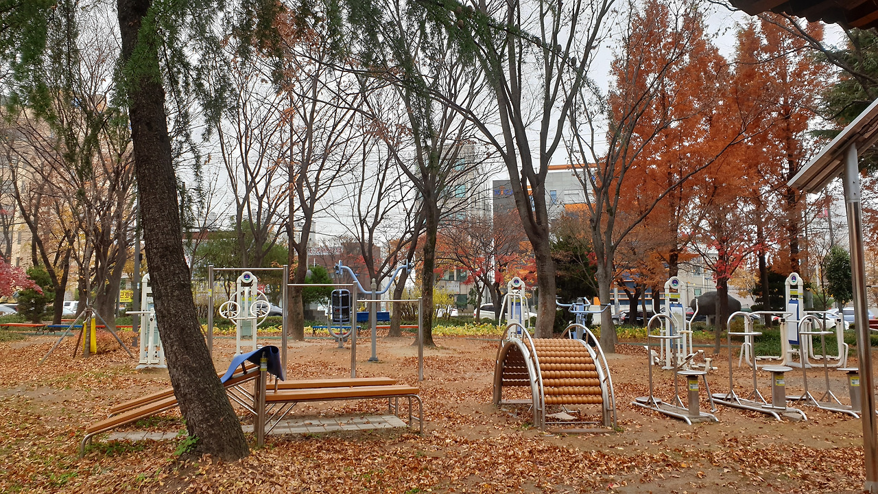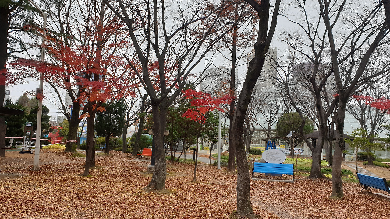 쉬지 않는 시간에 이끌려 세월은 어느덧 가을 끝자락에 이르렀다. 하지만 농성광장 공원 나무들은 여전히 가을을 머금고 있다. 앞만 보고 바쁘게 살아가는 사람들이 넘쳐 나는 도시에서, 넉넉한 공간에 많은 풀과 나무들이 숨 쉰다. 계절 앞에서 나무는 늦장을 부린다. 더러는 나뭇잎 다 떨구고 검은 회색 빈 가지를 드러내 놓은 나무도 있지만, 제법 많은 나무들이 지난겨울부터 숨겨온 영혼의 빛을 마침내 가을에 드러낸 색동옷 차림이다. 심지어 어떤 나무는 아직 푸르기까지 하다.