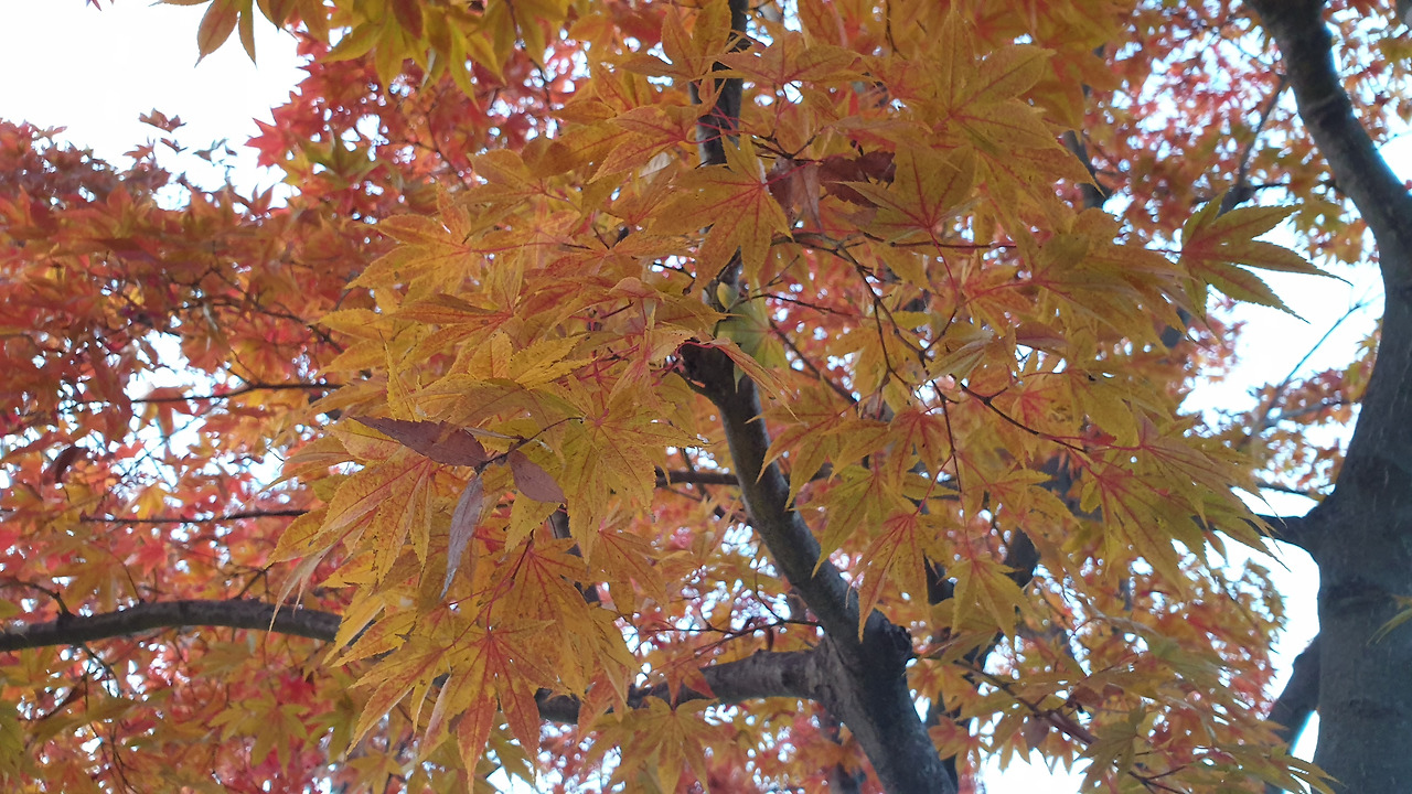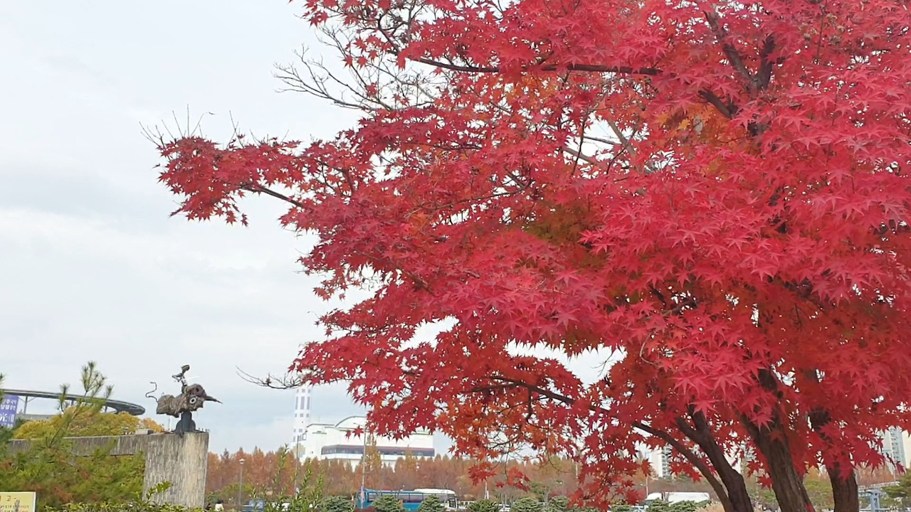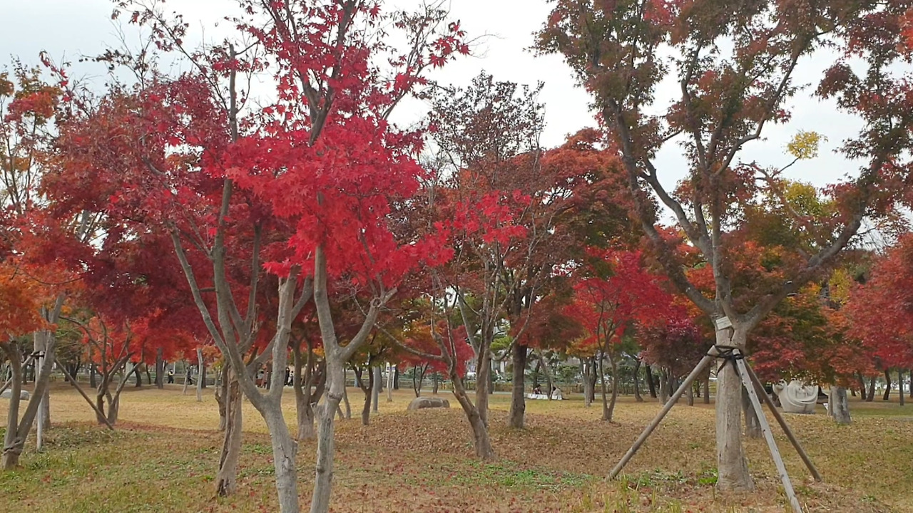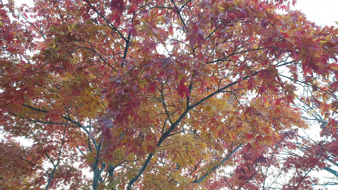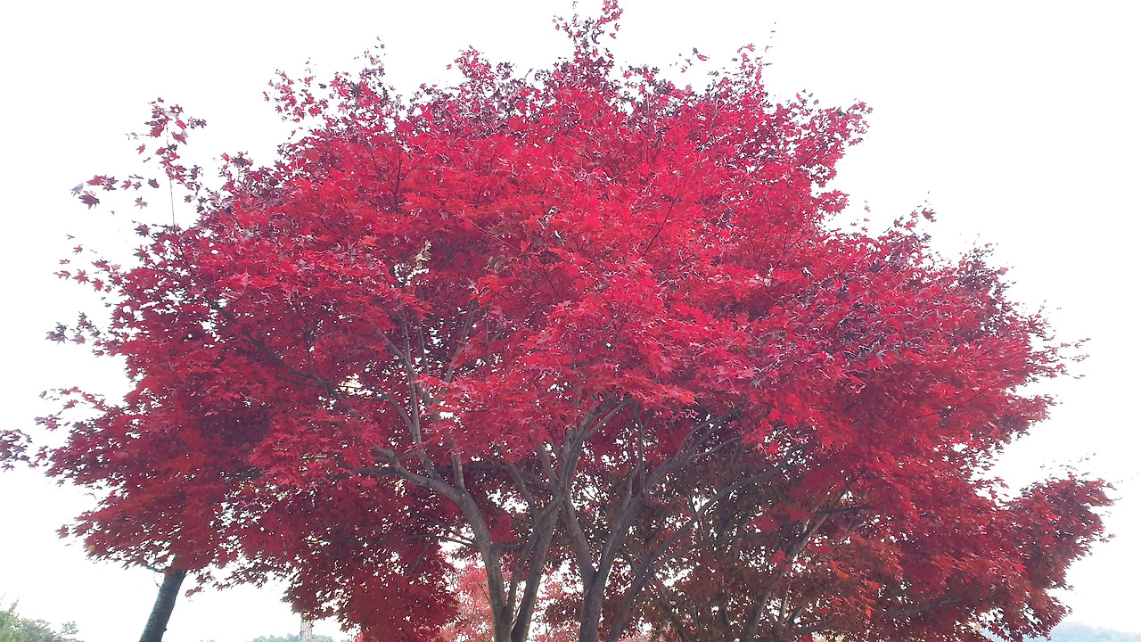 상무시민공원에 왔다. 근처 결혼식장에서 축하하고 식사를 마친 후였다. 지하 식당에서 수십 가지 음식을 접시에 옮겨 담아와 소처럼 우걱우걱 먹었다. 소가 아니라 되새김질을 할 수는 없으니, 옆에 있는 공원을 찾았다. 일이 바빠서 단풍을 제대로 보지 못하기도 했고, 소화도 시켜야 했기 때문이다. 근처 아파트 단지에 둘러싸인 공원은 주민에게 오아시스 같은 곳이다. 다행히 공원의 나무는 단풍이 절정에 든듯했다.