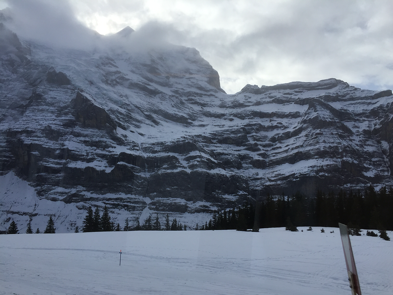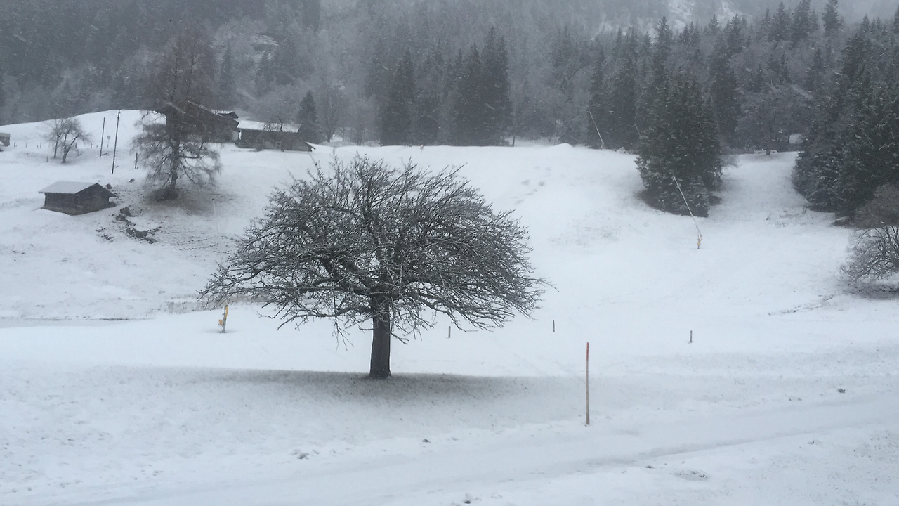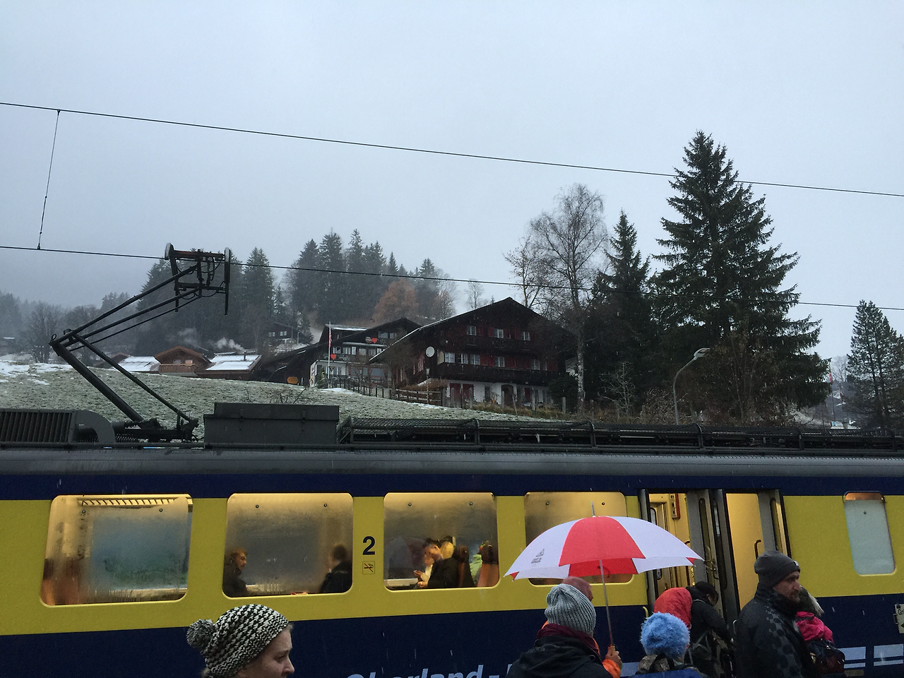 베른에서 출발할 때는 안개 비가 내리더니 인터라켄에서는 눈으로 내린다.