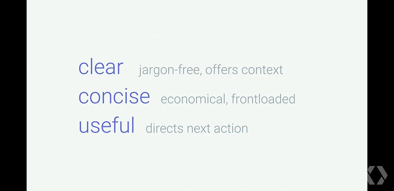 Google은 몇 년 전부터 UX writing이라는 화두를 갖고 IO에서 사례 발표를 하는 등 많은 노력을 하고 있습니다. I/O 2017에서도 실무자들이 나와서 Stand out UX writing이라는 주제로 발표를 해주었는데, 내용이 정말 알차서 소개를 해드리겠습니다.