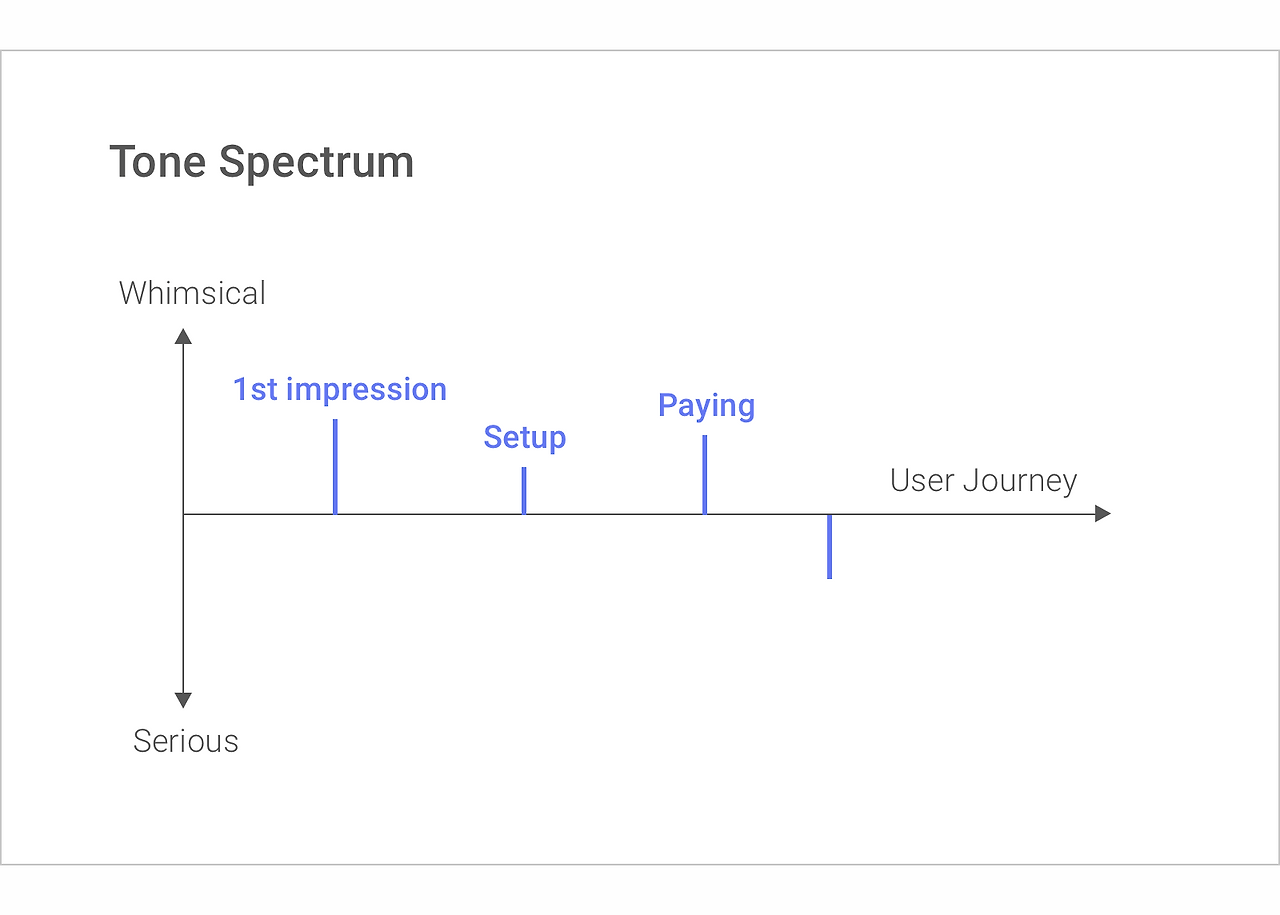 통통 튀는 문구도 상황에 맞게 써야 합니다. 구글느님은 전문용어로 tone spectrum이라고 하더라구요. 예를 들자면 서비스를 제일 처음 소개하는 페이지에서는 매력적이고 참신한 톤을 쓰는 게 좋겠죠? 하지만 결제취소 방법이나 오류를 해결하는 페이지에서는 정보전달에 충실해야 겠구요.