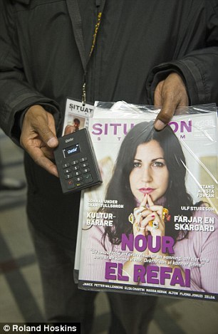 여행 전 웹서핑을 하다가 찾은 사진입니다. 스웨덴에서는 노숙자가 카드 단말기를 들고 다닌다고 하더라구요. 이 사진 속의 노숙자를 찾아 스톡홀름 중앙역에 가보았습니다. 복지가 훌륭한 북유럽의 대표국가인 스웨덴이지만 시리아 난민을 북유럽에서 가장 많이 수용한 국가답게... 노숙인이 많이 보입니다. 우리나라의 Big Issue같은 잡지를 파는 분이 계시길래 말을 걸어봤습니다.