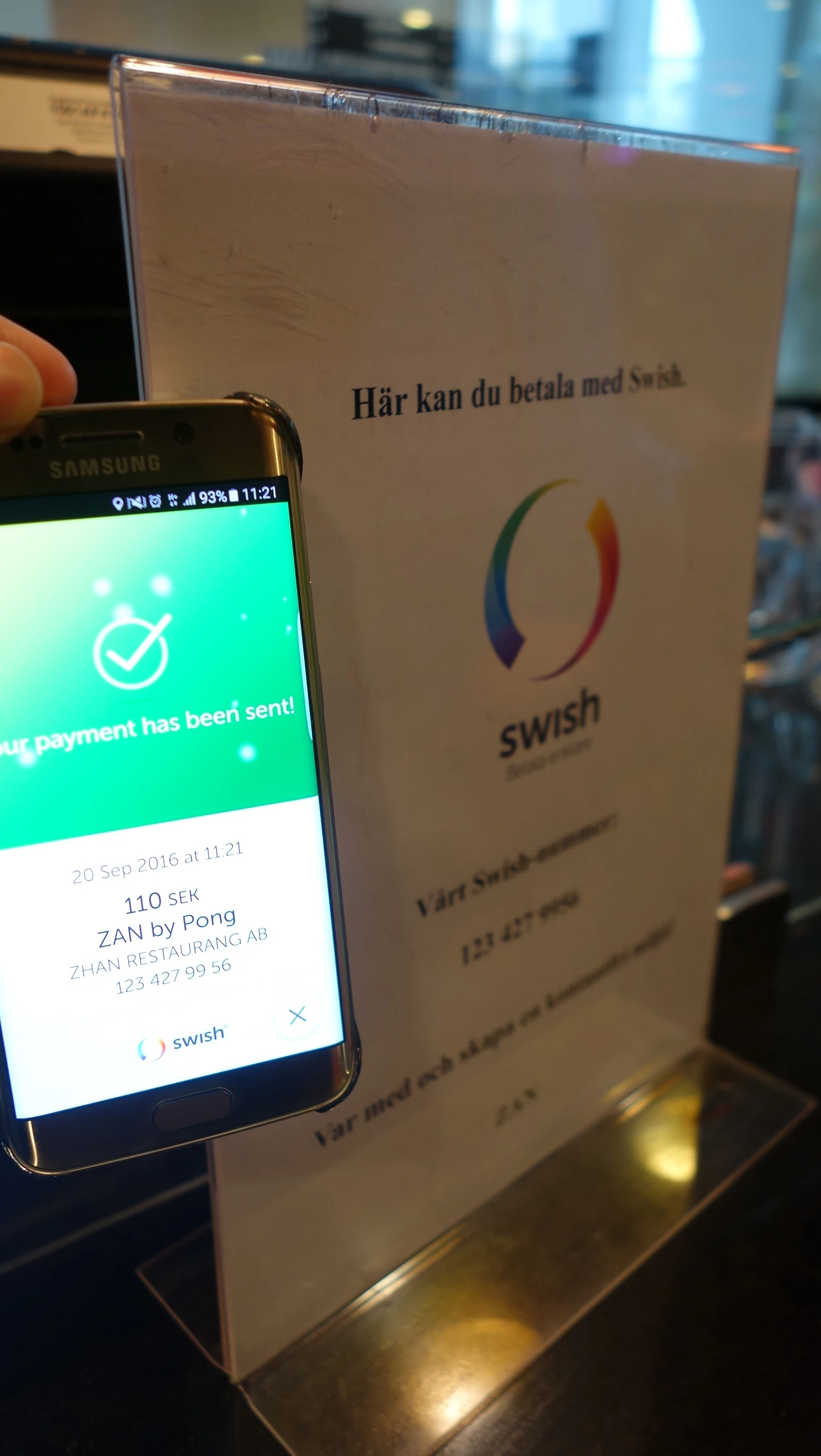 이번엔 같이 간 현지인 친구가 Swish로 지불을 하고 현금을 친구에게 주었습니다. 그런데, 이 Swish라는 앱이 굉장히 편해 보입니다. 내 계좌를 등록하면 전화번호로 송금을 하게 되는 우리나라의 토스(Toss)와 매우 유사한 방식의 앱인데, 토스는 오프라인 상점에서는 지원하지 않는 경우가 더 많지만 Swish는 대부분의 상점에서 받습니다.