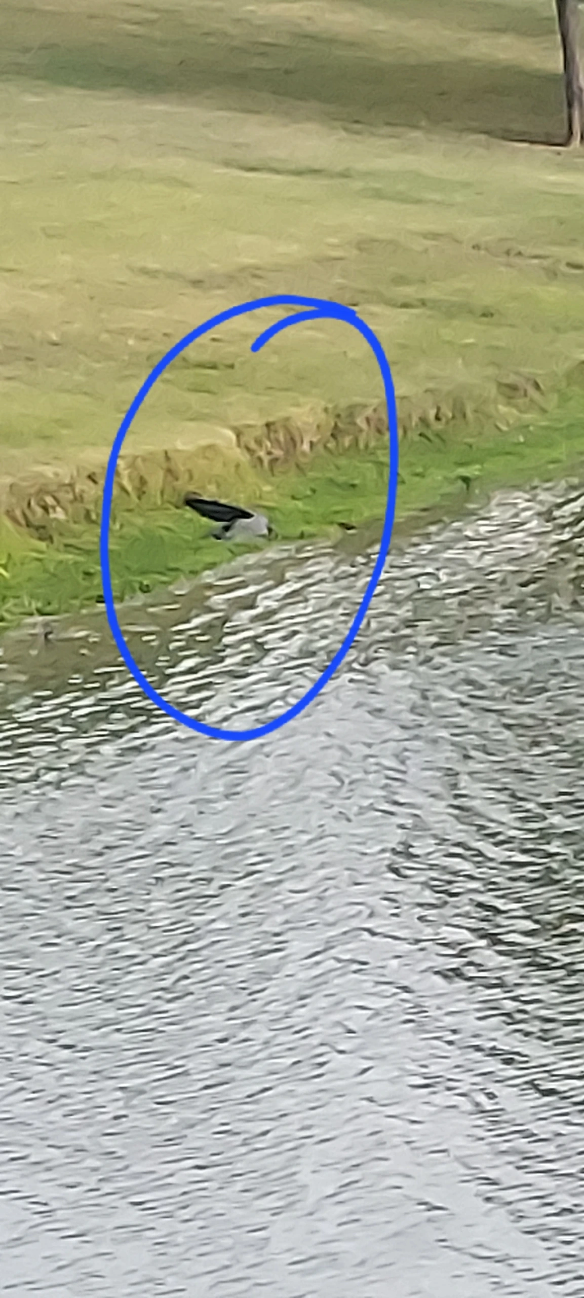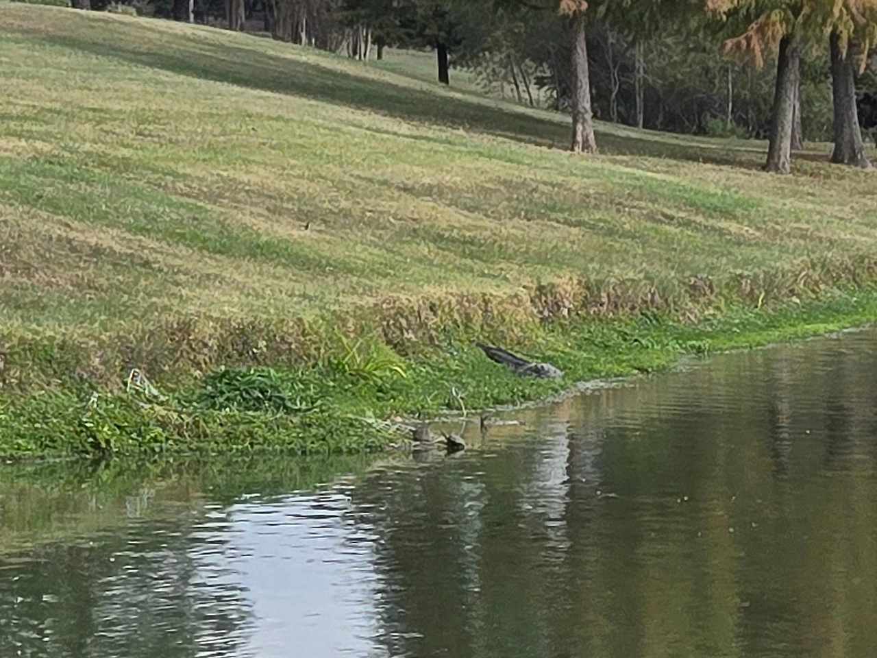 이웃인 파올라가 호수에 앨리게이터가 산다고 했다. 잘못 들은 건가 싶어 진짜냐고 너 사진 있으면 보여달라고 했다. 다음에 자기가 찍으면 보여주겠단다. 그 대화가 지난주 금요일. 그리고 어제 산책했나 보다. 오늘 아침, 앨리게이터 사진을 보내주었다. 어제 나도 호수 산책을 했는데 내가 왜가리 백로를 바라보던 바로 그 자리에서 악어 사진을 찍었던 모양이다. 냇물이 호수로 흘러드는 여울목, 그 근처 둔덕을 돌로 정비해 놓았는데 거기 바로 옆 풀숲에 악어가 있었다.