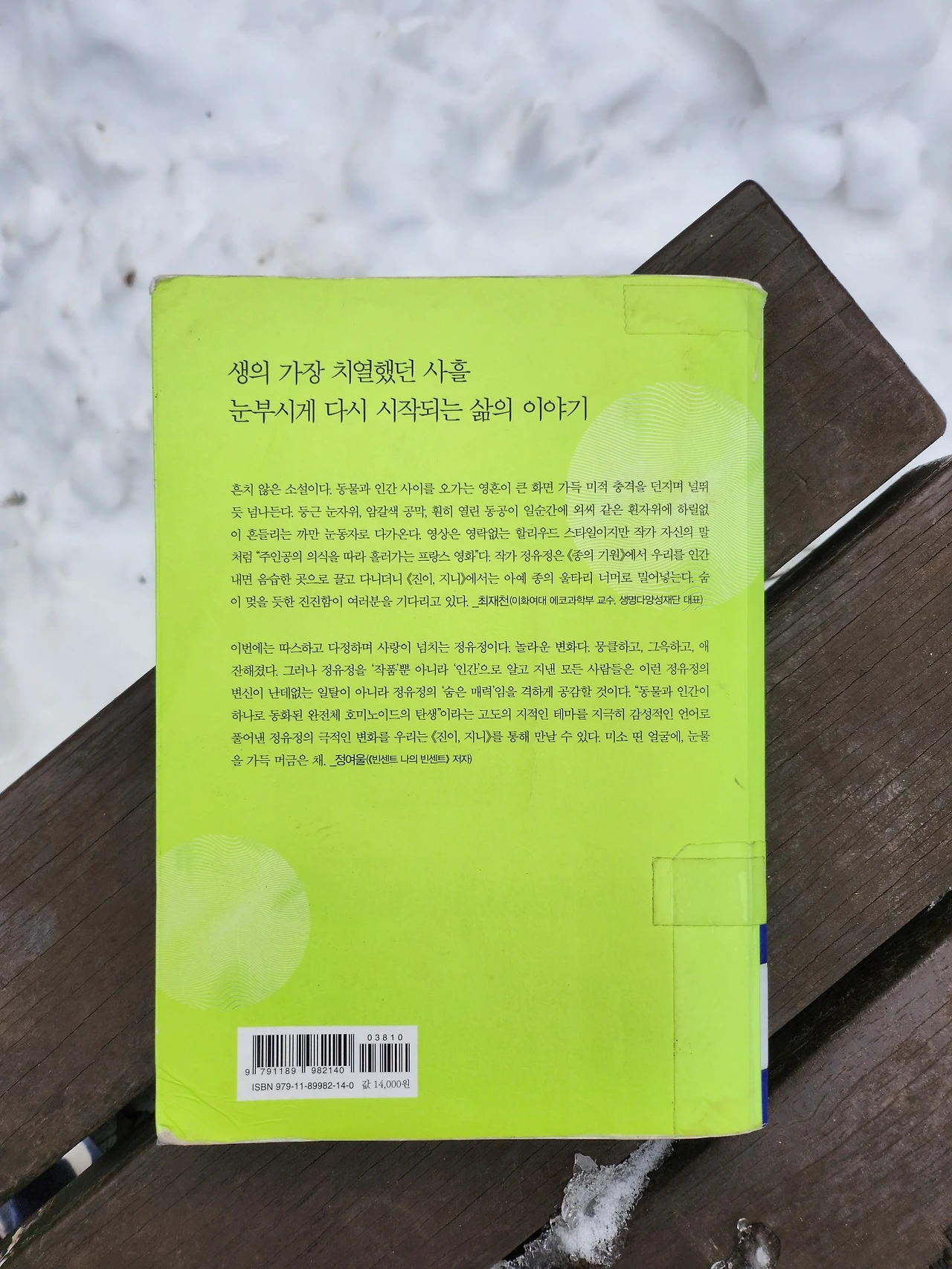 주된 스토리는 동물과 관련된 판타지 같은 소설이었지만, 진지하고 리얼해서 겸허한 마음까지 드는 책이다.