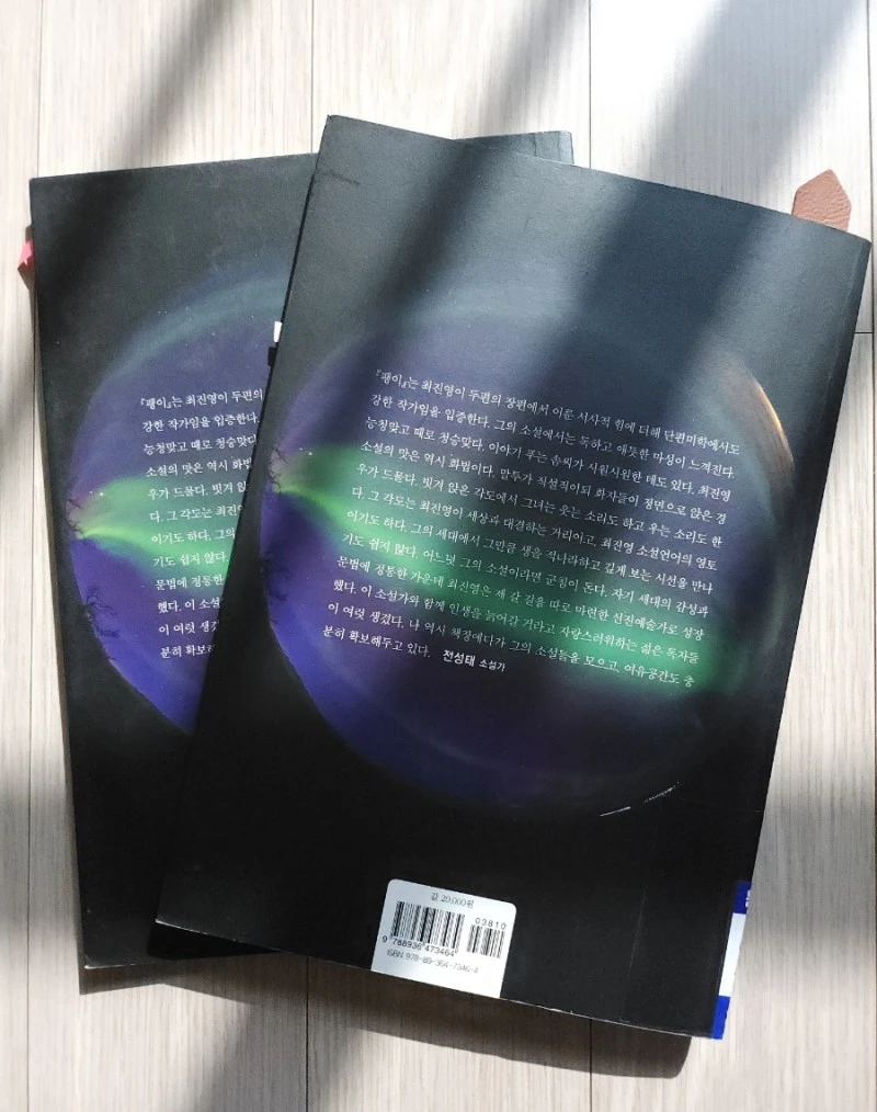 낙엽이 지고 서리가 내리던 어느 밤, 오빠는 오랜만에 팽이를 돌렸다. 나는 오빠 곁에 가만히 앉아 오빠와 나 말고는 아무도 누울 수 없는 좁은 방의 무게를 느꼈다. 우리가 허락된 크기만큼 자라는 동안 무너지지도 부서지지도 않고, 우리의 숨과 비밀과 유년을 덧바르며 거듭 견고해진 방. 까만 그곳에서, 야광 팽이가 팽팽 돌고 있었다.