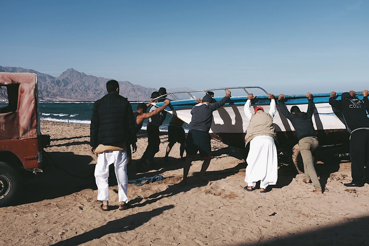 카이로에서 피라미드를 목격하고 이집트까지 온 일단의 목적이 해결되었으니, 더 안쪽으로 들어갔다가 성과 없이 돌아 나온다고 해도 크게 허탈할 일은 아닐 것 같았다. 배낭여행의 다소 진부한 클리셰인 장거리 나이트 버스 이동을 한사코 거부하고, 제값을 치러 비행기를 타고 샴엘쉐이크 공항으로 단숨에 넘어갔다. 여기서 택시나 밴으로 다시 대략 한 시간 반쯤을 달려 홍해 바다를 마당에 둔 다합이라는 작은 마을에 도착하게 된다.