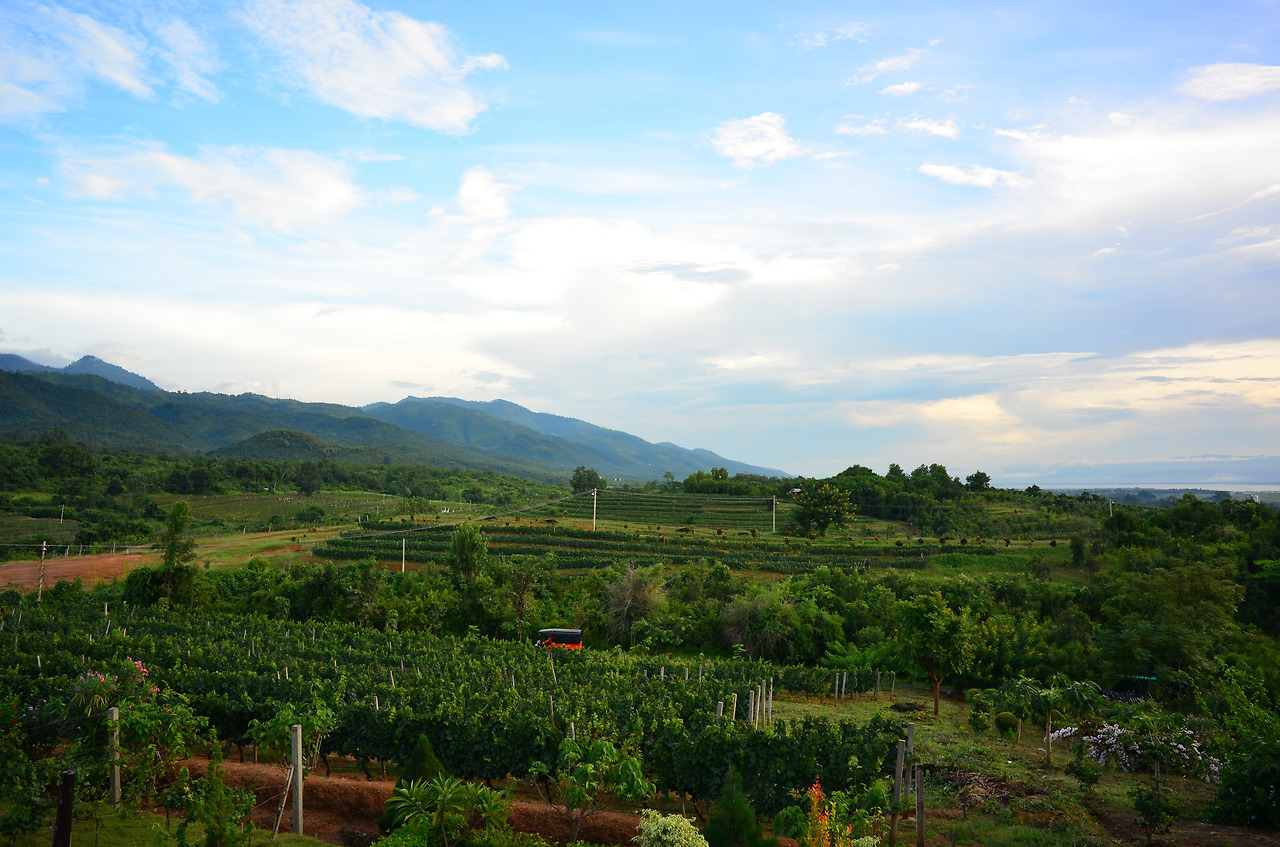 미얀마에 와이너리라니? 각자 자전거를 구해서 타고 한적한 시골길을 30분가량 달리니 산속에 정말 와이너리가 있다! 3천짯에 총 4잔의 와인을 주는데, 맛은 차치하고 포도밭이 산 능선을 따라 있고 정상의 부근에 테이스팅(Tasting)을 위한 테이블이 있었기 때문에 지는 석양을 안주로 삼아 마실 수가 있었다. 괜히 와인잔에 석양을 담아보기도 하고 즐겁고 실없는 장난을 하며 시간을 보내고 내려왔다.
