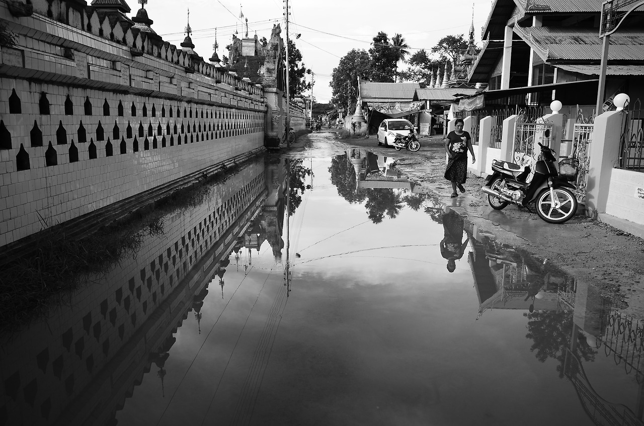 껄로냐 인레냐 둘 중 고민할 것도 없이, 버스는 껄로를 지나서 인레호수 근처의 마을인 낭쉐에 나를 내려주었다. 하차하자마자 비가 한바탕 쏟아지는 바람에 잠시 터미널로 쓰이는 듯한 가게로 대피한 후 다시 금방 그친 비를 피해서 숙소를 탐색하기 시작한다. 역시나 25달러를 불렀다. 25달러는 만달레이에서부터 바간, 그리고 이 곳에서까지 마치 표준요금표에 붙은 가격인 마냥 나를 따라다녔다. 마음에 드는 가격과 방을 구하기가 쉽지 않음을 직감하였으나, 오랫동안 버스 안에만 있었기 때문에 좀 더 발품을 팔기로 했다.