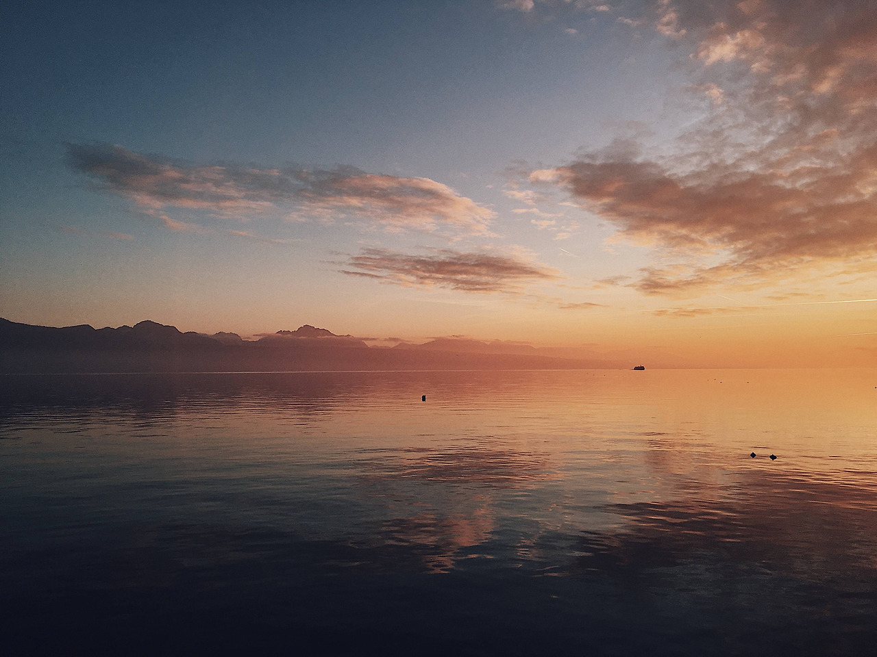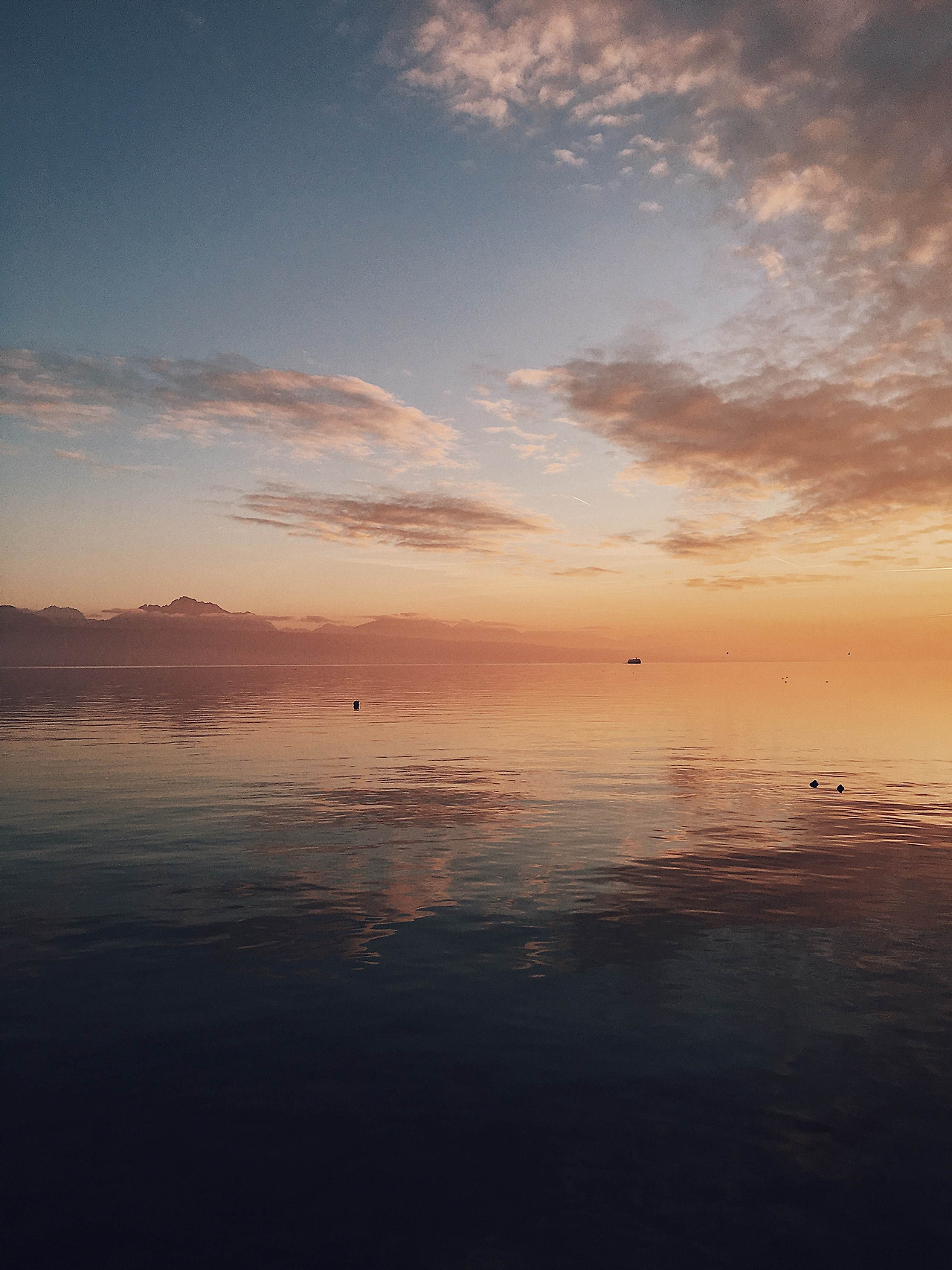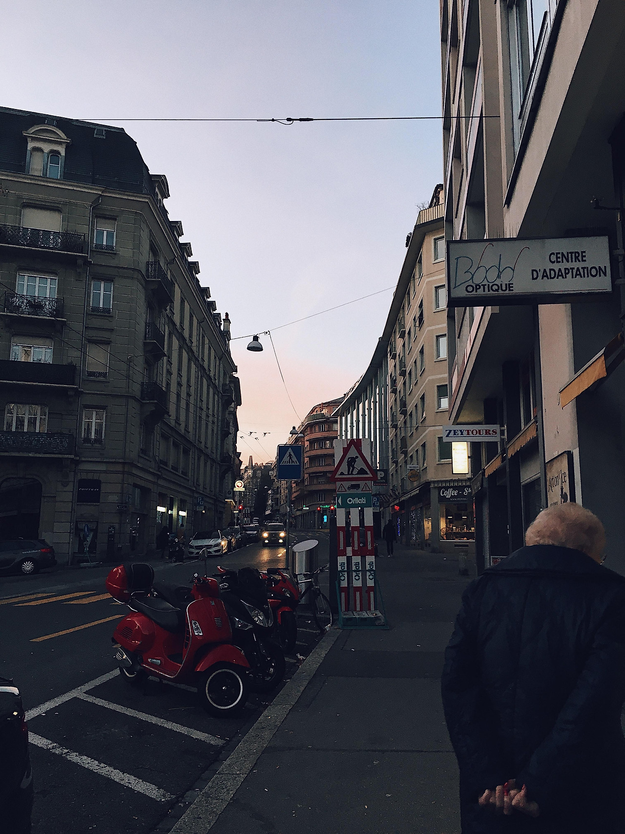 그래도 스위스라는 지역이 워낙 무공해에 가까운 지역이라 집 앞을 조금만 걸어도 모든 것에 자연이 느껴졌다. 건물 지붕 위로 보이는 설산도 그렇고, 도로 사이사이로는 멀지 않게 제네바 호수와 아름다운 석양이 간간이 보였다.