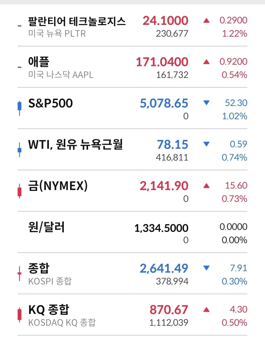 어제보다 소폭하락