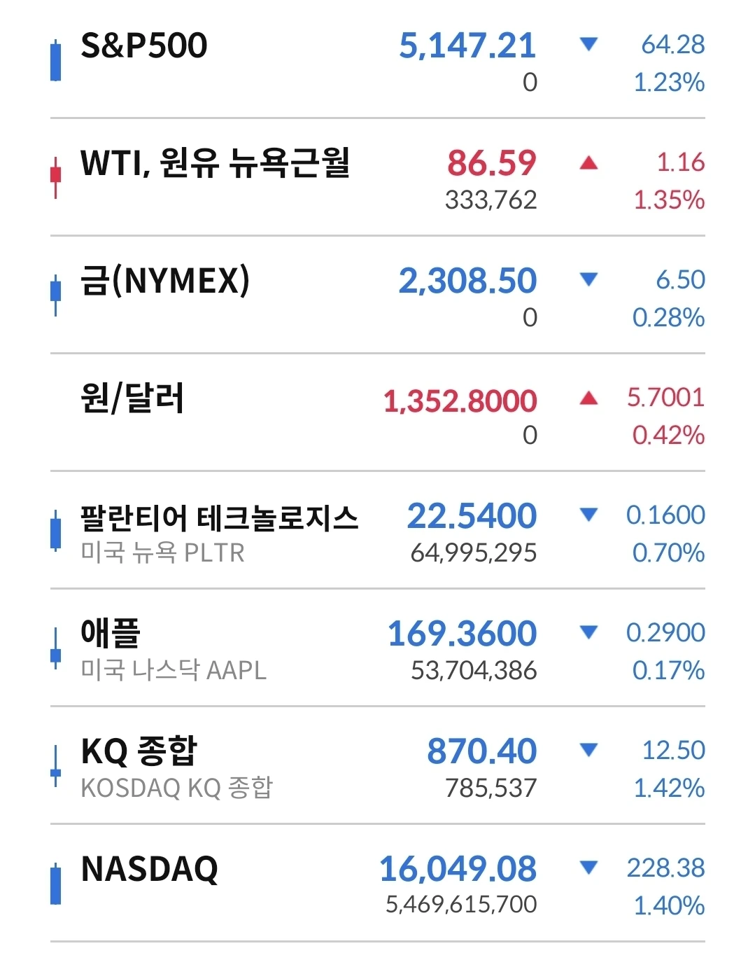불확실성이 커져서 하락 마감