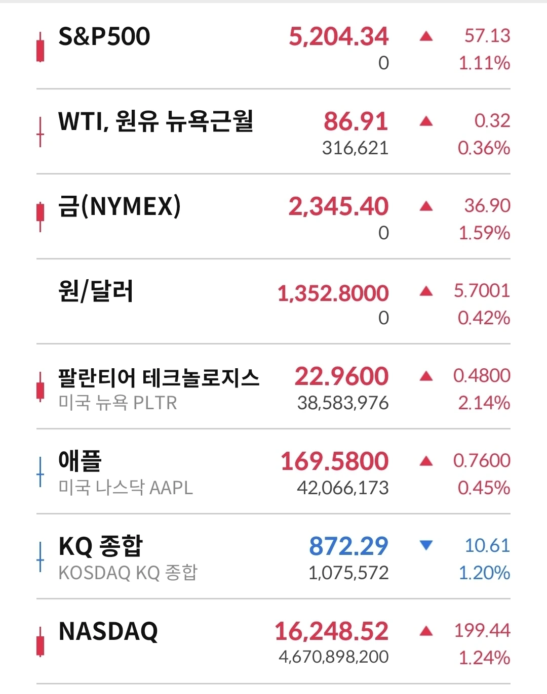 금가격이 상승하는 경향