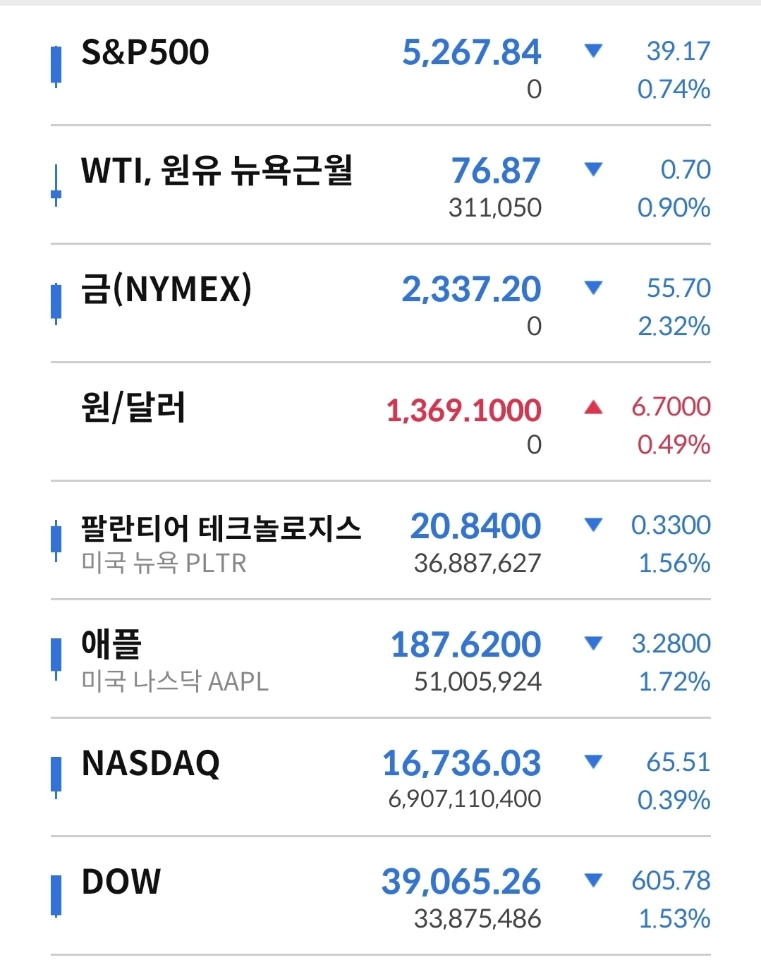 하락마감