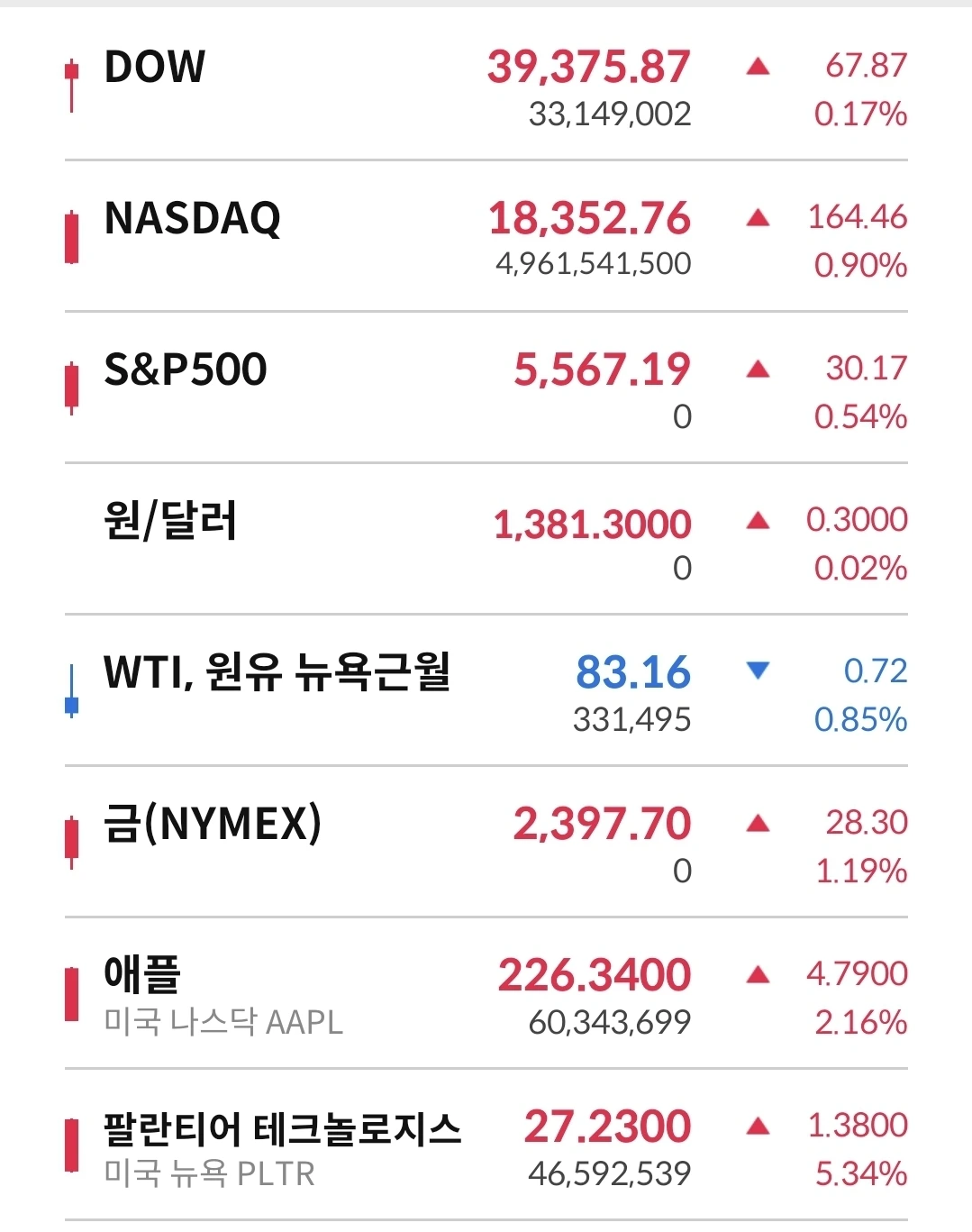 뉴욕증시는 강세