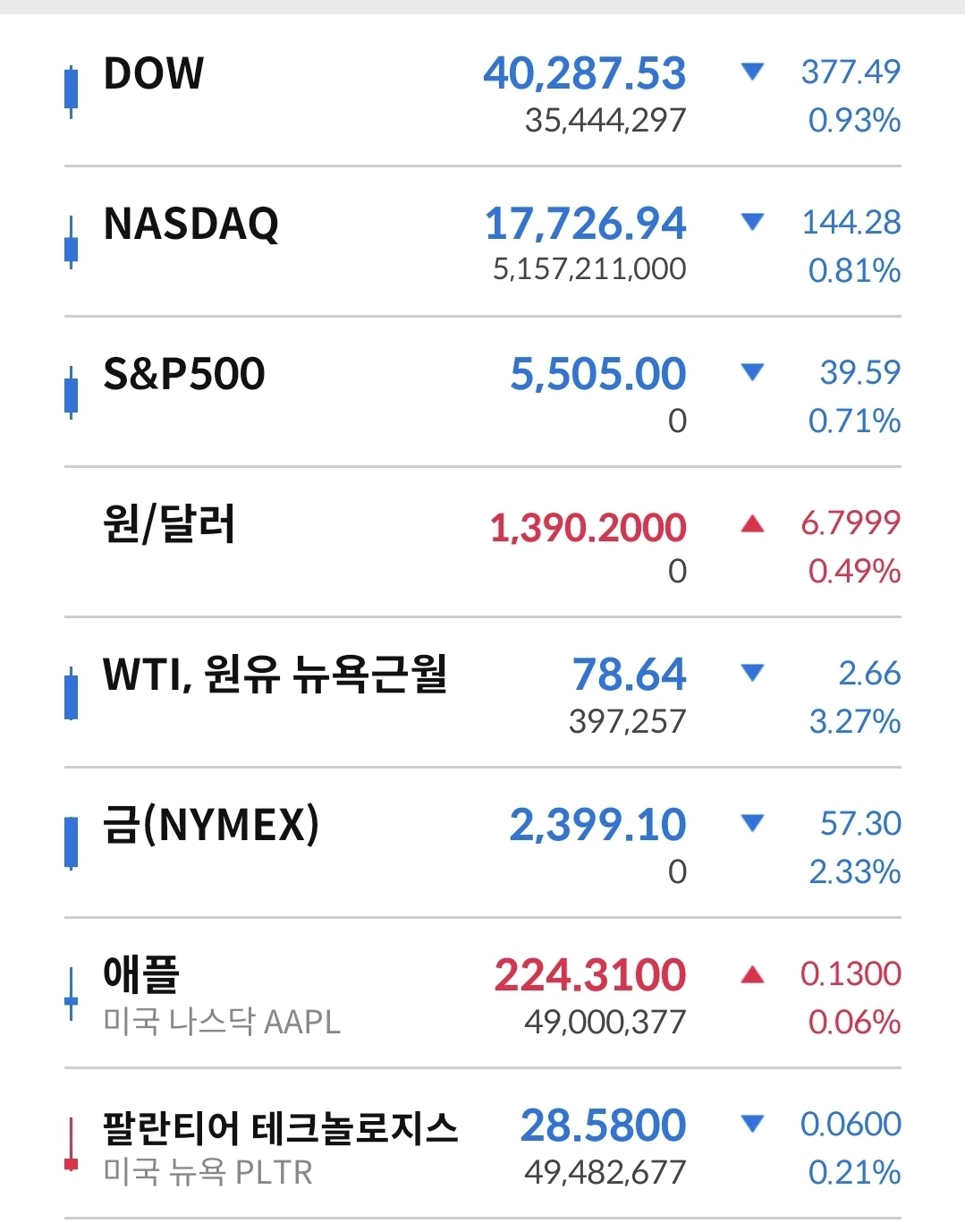 지난 6월 3일 이후 최대 낙폭