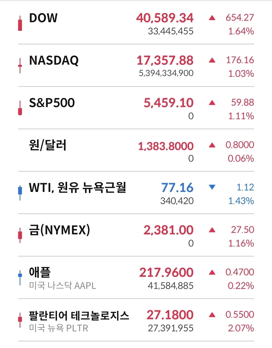 야간 거래 초반 상승세를 유지하다가