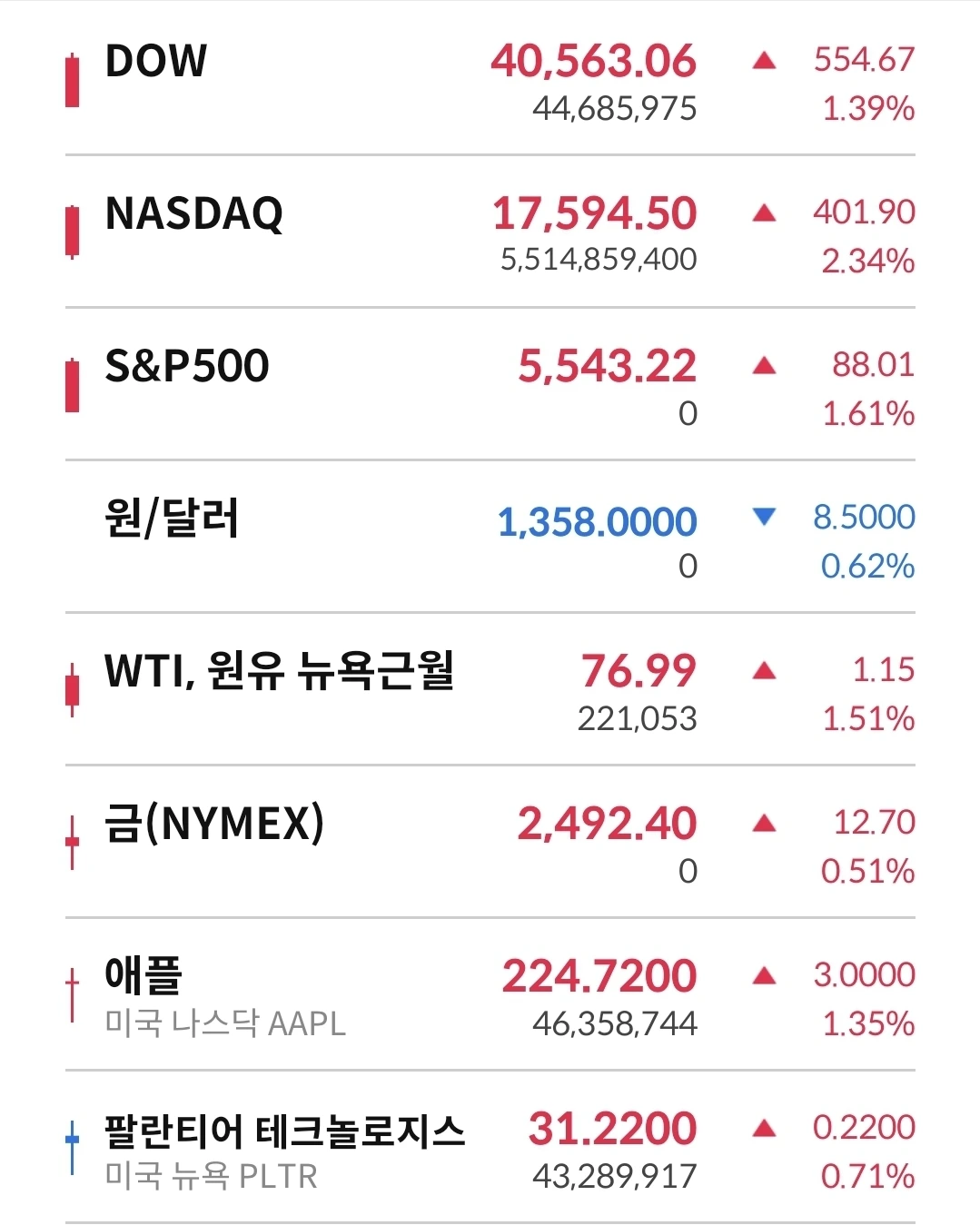 1) 다우 1.39%, S&P 1.61%, 나스닥 2.34% 상승
