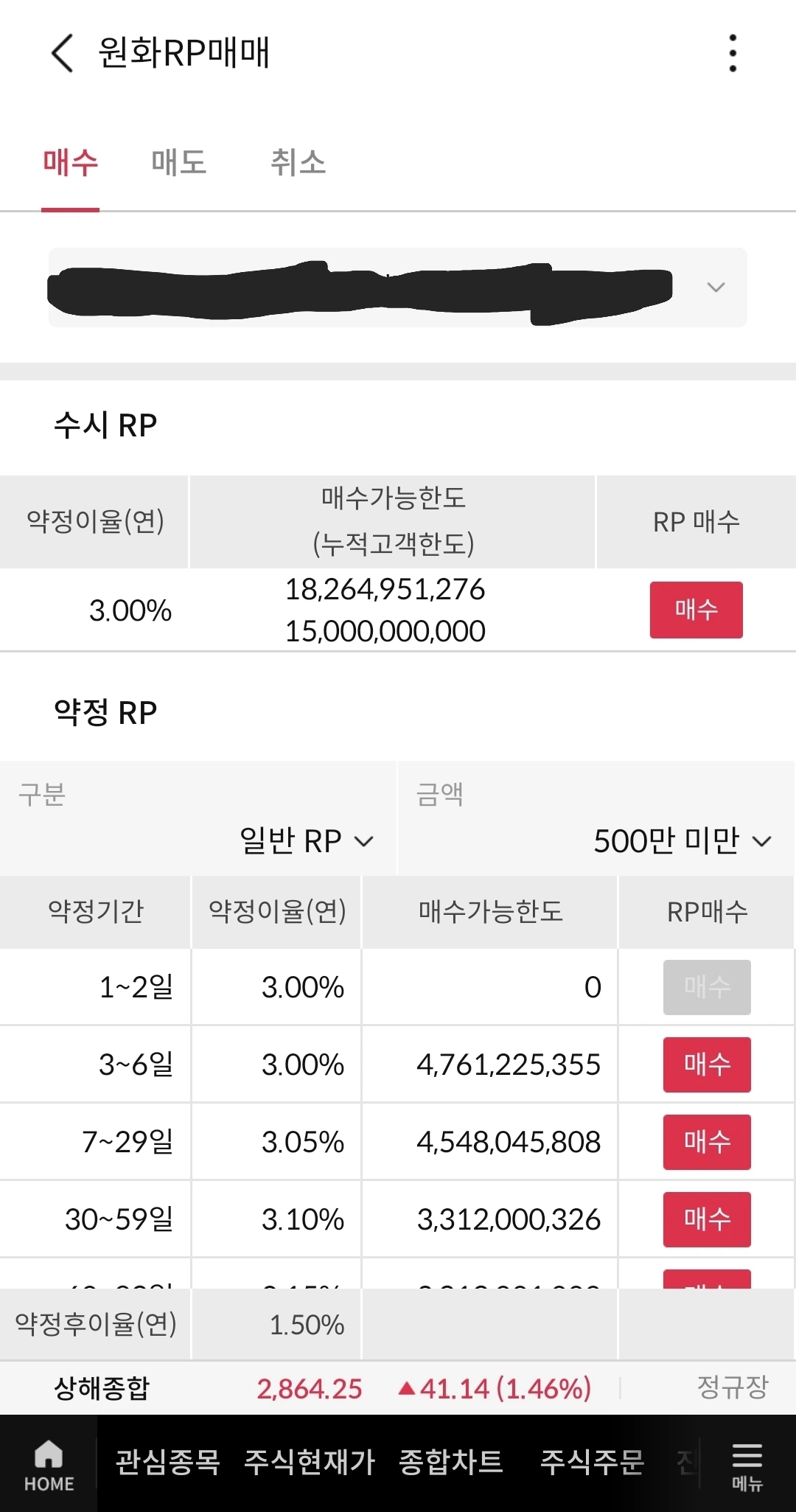 > 투자자는 RP상품에 대하여 증권사로부터 충분한 설명을 받을 권리가 있으며, 투자전 상품설명서 및 약관을 반드시 읽어보시길 바랍니다.