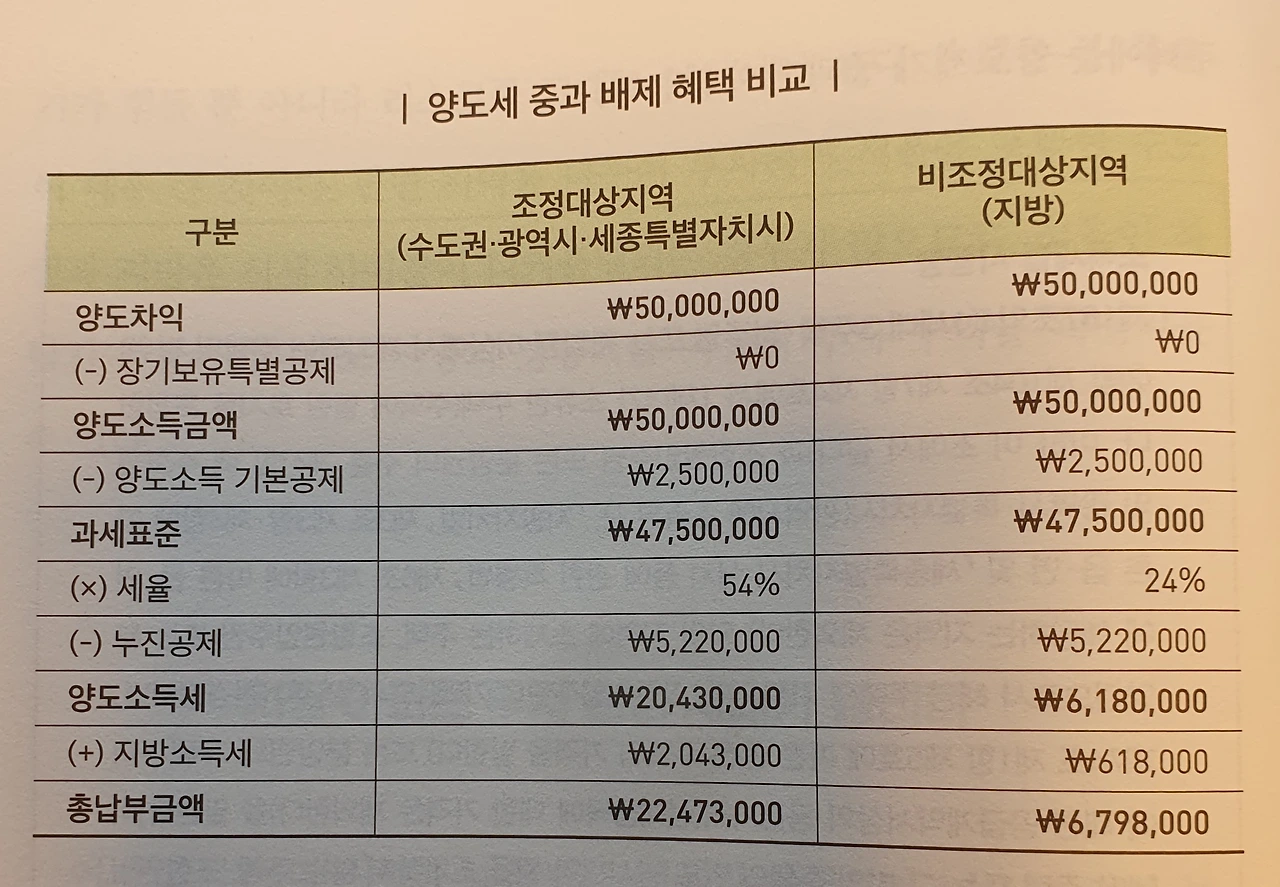 15) 조정대상 지역에 위치하더라도 공시가격 3억원이하의 지방 저가 주택은 다주택자에게 양도세 중과 규정이 적용되지 않는다. 여기에 더해 공시가격 1억원이하의 지방 주택은 취득세 1%가 적용되며, 중과에도 배제된다. 즉, 공시가격 1억원 이하의 지방 주택은 양도세와 취득세를 동시에 절세 할 수 있다.