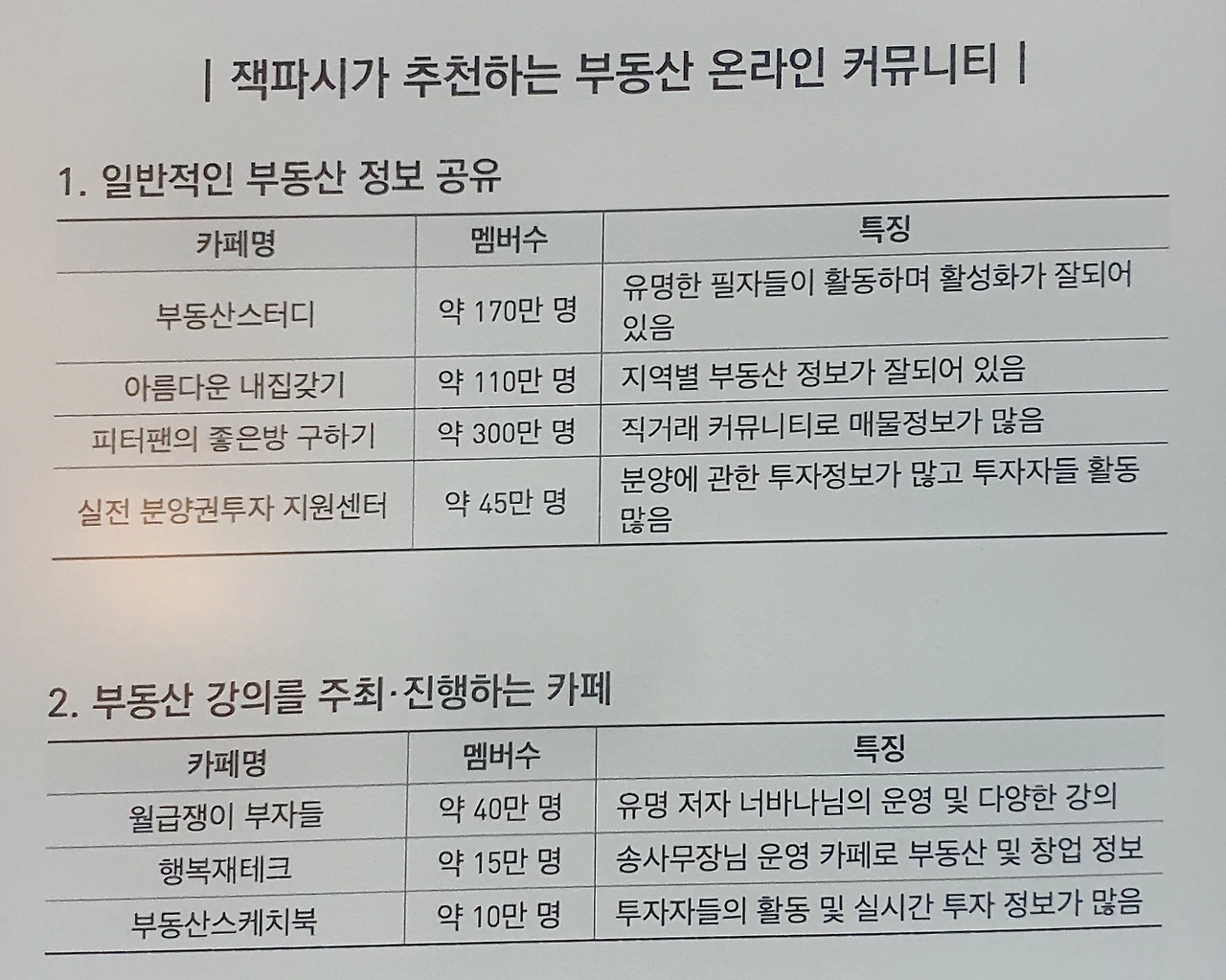58) 책, 온라인 커뮤니티, 블로그, 유투브 등 다양한 경로를 통해 부동산 정보를 얻을 수 있다. 초보일 때는 어느 한쪽으로 치우치지 않도록 다양한 관점의 정보들을 통해 기본기를 쌓는 게 중요하다. 기초가 튼튼할수록 진짜 좋은 정보가 무엇이며, 어디에서 얻을 수 있는지를 자연스럽게 알게 될 것이다.