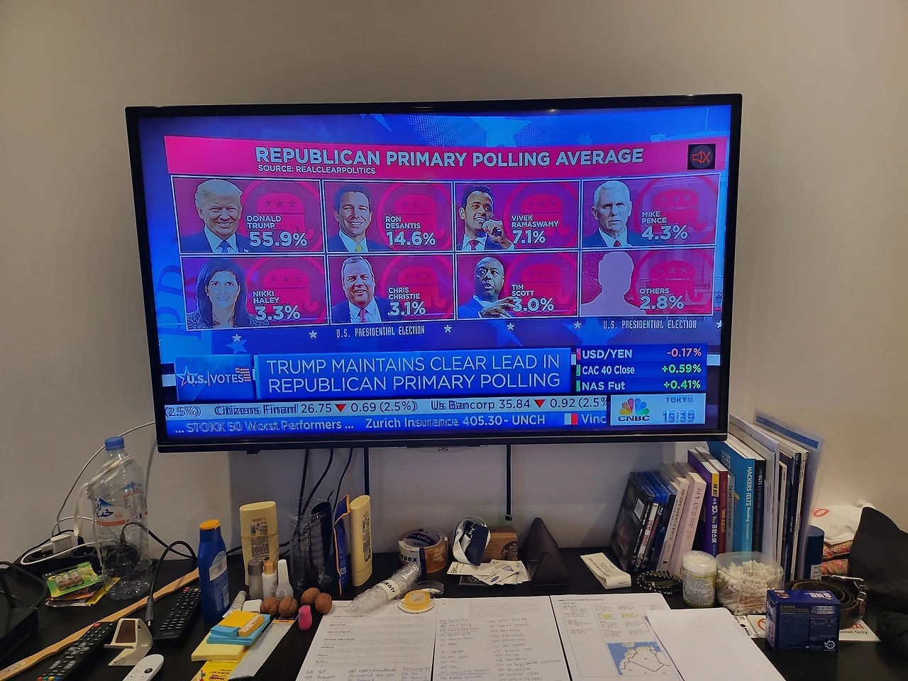 브릭스 회원국들이 모여서 회담을 진행하고 있고, 여러가지 아젠다를 놓고 협의 중이라고 하는데, 그 중에 하나는 우크라이나 전쟁관련된 것이라고 한다. 이건 인터넷을 찾아 봐야겠다. 다음 뉴스는 미국 공화당 내 대선 주자를 선정하는 뉴스인 것 같은데, 트럼프가 앞도적으로 지지율이 높아 보인다. 결국 공화당에서는 또 트럼프가 대선에 나올 것 같다. 미국도 정말 선거에 내 보낼 인재가 없는 듯 하다. 나왔던 사람이 또 나오면 선거에 당선될 확률은 얼마나 될 것인가? 미국도 재미 있는 나라라는 생각이 가끔씩 든다.