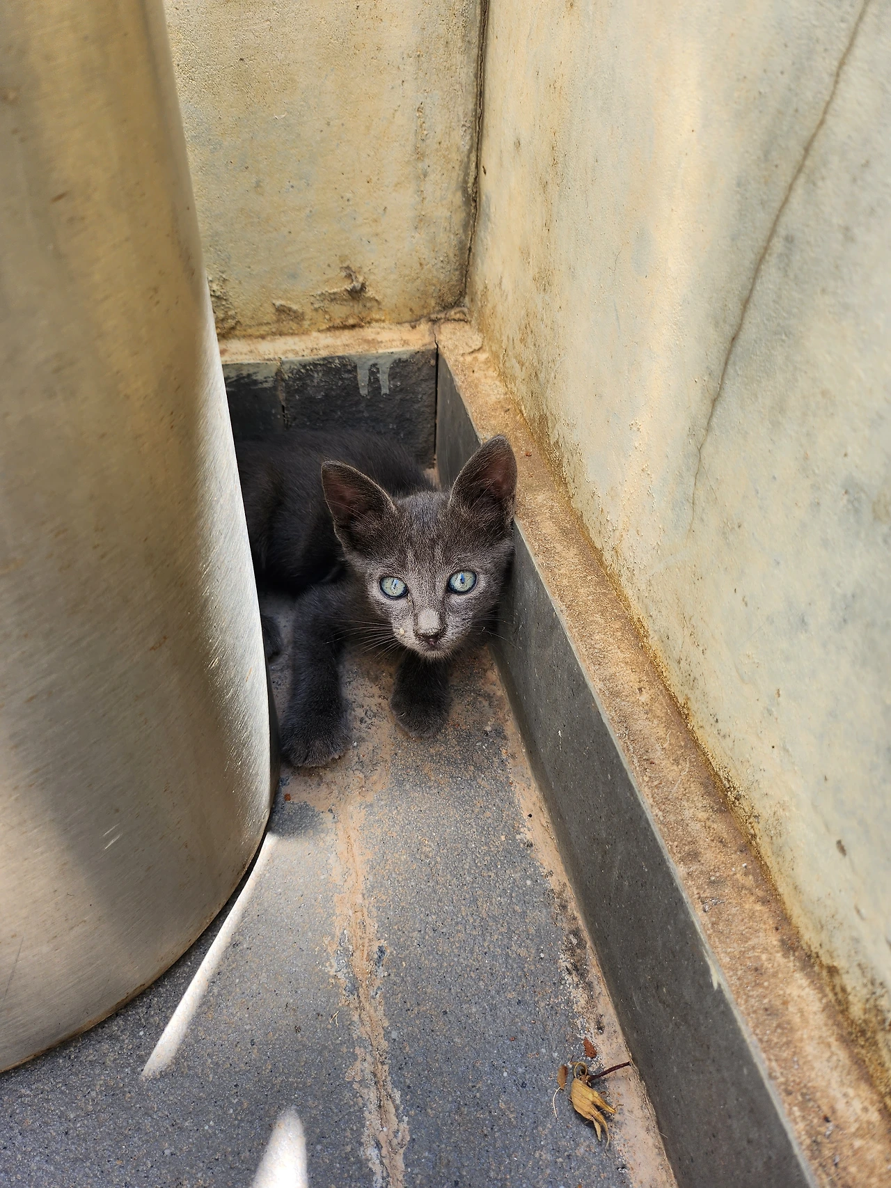 여기는 어디에 가든 고양이 천국이다. 회사에도 고양이 두가족이 살고 있다. 얼마 전에도 고양이들의 출산이 있어서 네마리의 새 생명이 태어났다. 그런데, 이번 주부터 그동안 못 보던 아기 고양이가 이 동네로 들어 왔다. 검은색에 파란 눈을 가진 아기 고양이는 정말 잘 생겼다. 다른 고양이와는 종이 완전 다른데, 엄마 고양이가 안 보인다. 아마도 길을 잃고 이 동네로 들어 온 것 같고, 주변 고양이에 대한 경계가 심하다. 늘 긴장하며 사는 것이 보이기는 하나, 아기치고는 호기심이 많은 아이이다.