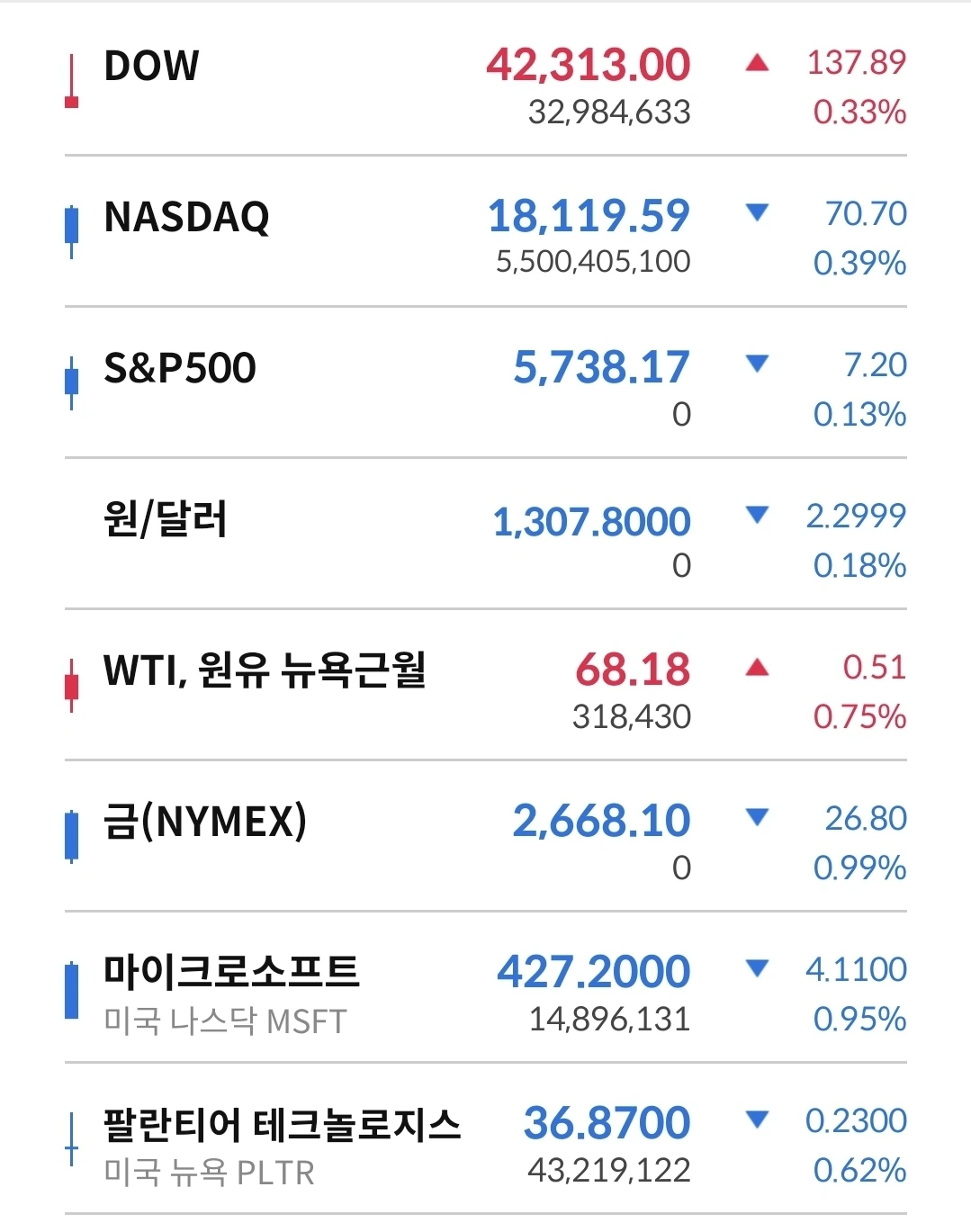 일단 시작은 -1% 이상 하락 중