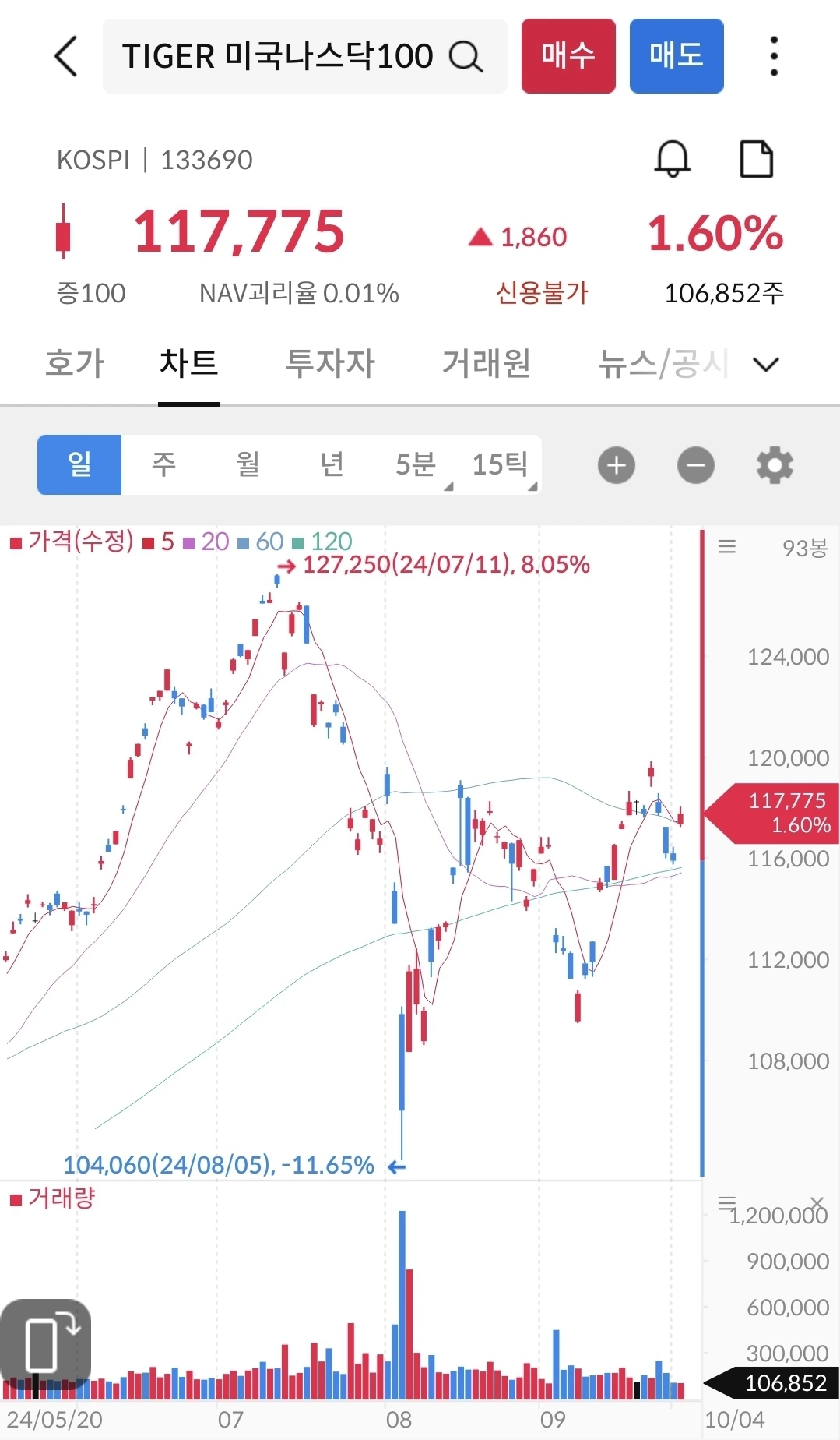 지난주 117,815에서 이번주 117,775로 마감했다. 전주비 -0.03% 하락했다. 거의 지난 주와 차이가 없다. 전체적으로 미국지수와 비슷한 움직임이다. 큰 변동은 없다.