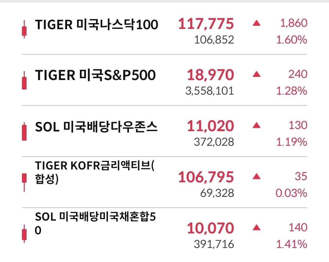 지난 주 10,840에서 이번 주 11,020으로 마감했다. 전주비 1.6% 상승했다. 꾸준히 우상향 중인데 상품이다. 매월 1일이나 2일에 배당금도 지급이 된다. 원래 배당금은 세금을 제하고 주는데, 퇴직연금 계좌에서는 세금을 안 내고, 나중에 연금으로 받을 때 내는 과세이연 구조이다. 매월 배당금이 나오는 고마운 상품이다.