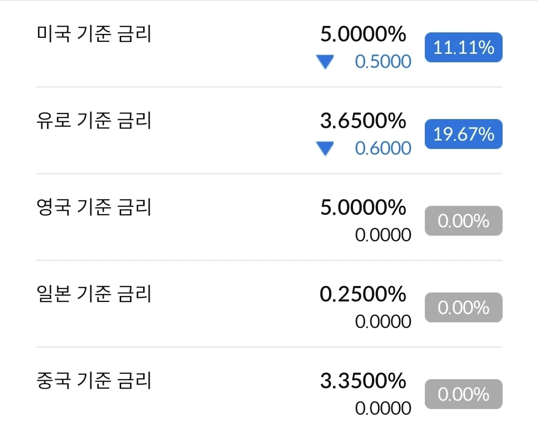 한국금리는 3.25%로 5개국 기준금리보다 낮다. 금리차이는 투자에게 아직도 위험요소로 작용할 수 있다.
