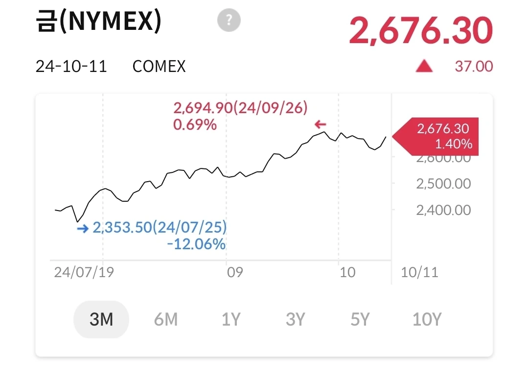 금가격도 지속적으로 상승 중이다. 지난 주 대비 상승했고, 아직도 상승 중이다. 안전 자산을 선호하기에 앞으로도 쭉 상승이 예상된다. 쉬지 않고, 꾸준히 상승 중이다.