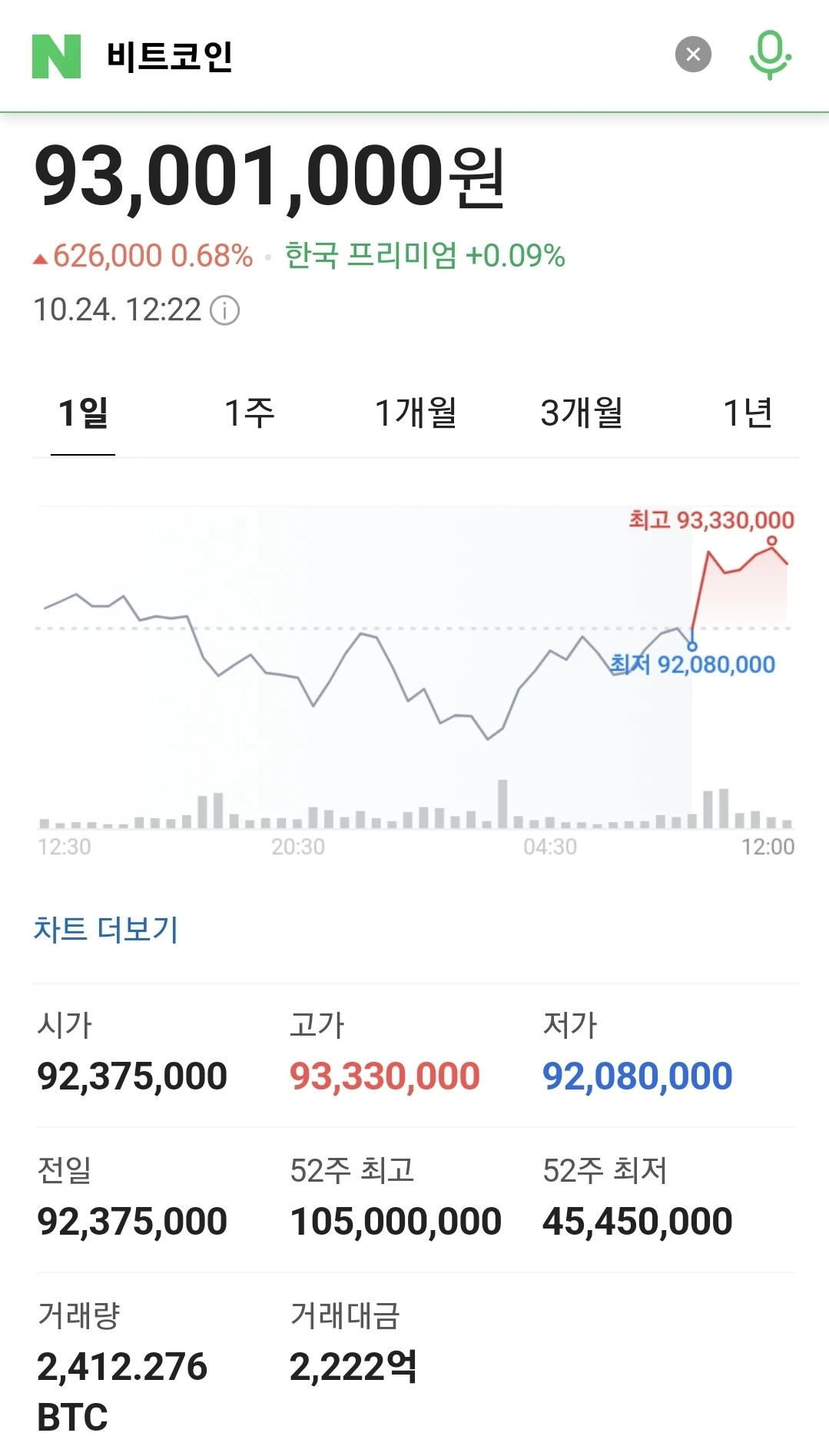 1) 1억원 앞둔 비트코인, 사흘동안 4% 빠져