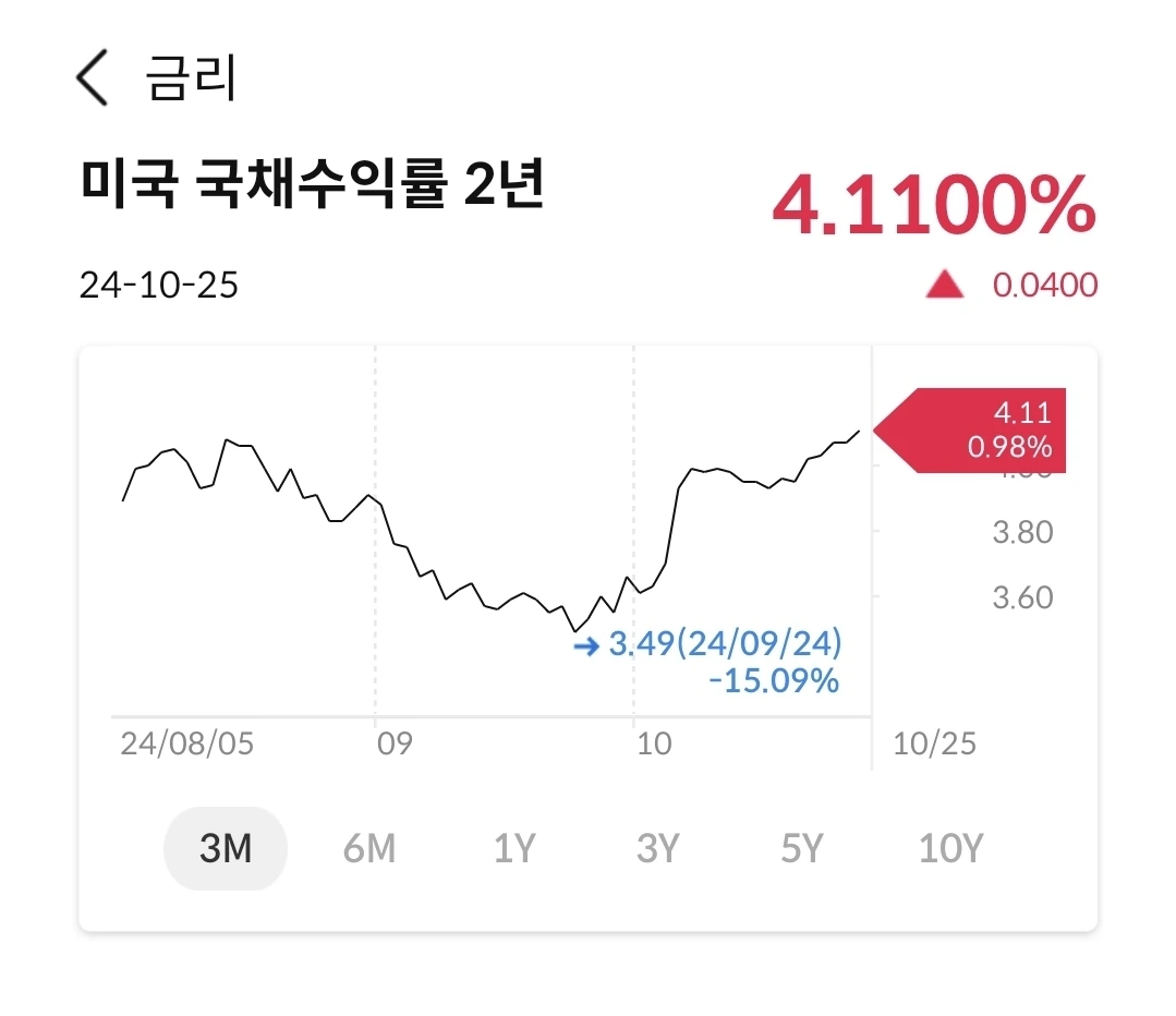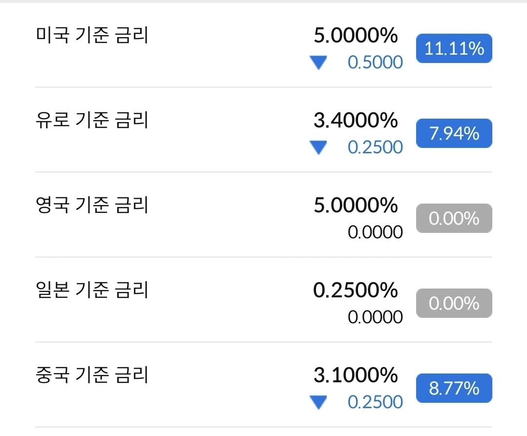 금주에는 캐나다가 빅컷을 단행했다. 미국은 11월에 0.25% 금리인하 단행이 예상되고 있다. 유럽중앙은행도 금리인하를 했다. 그래도 한국의 금리가 주요국가 대비 낮다. 한국의 금리는 2.75%. 외국인이 쉽게 한국에 투자하기 어려운 부분 중에 하나다.