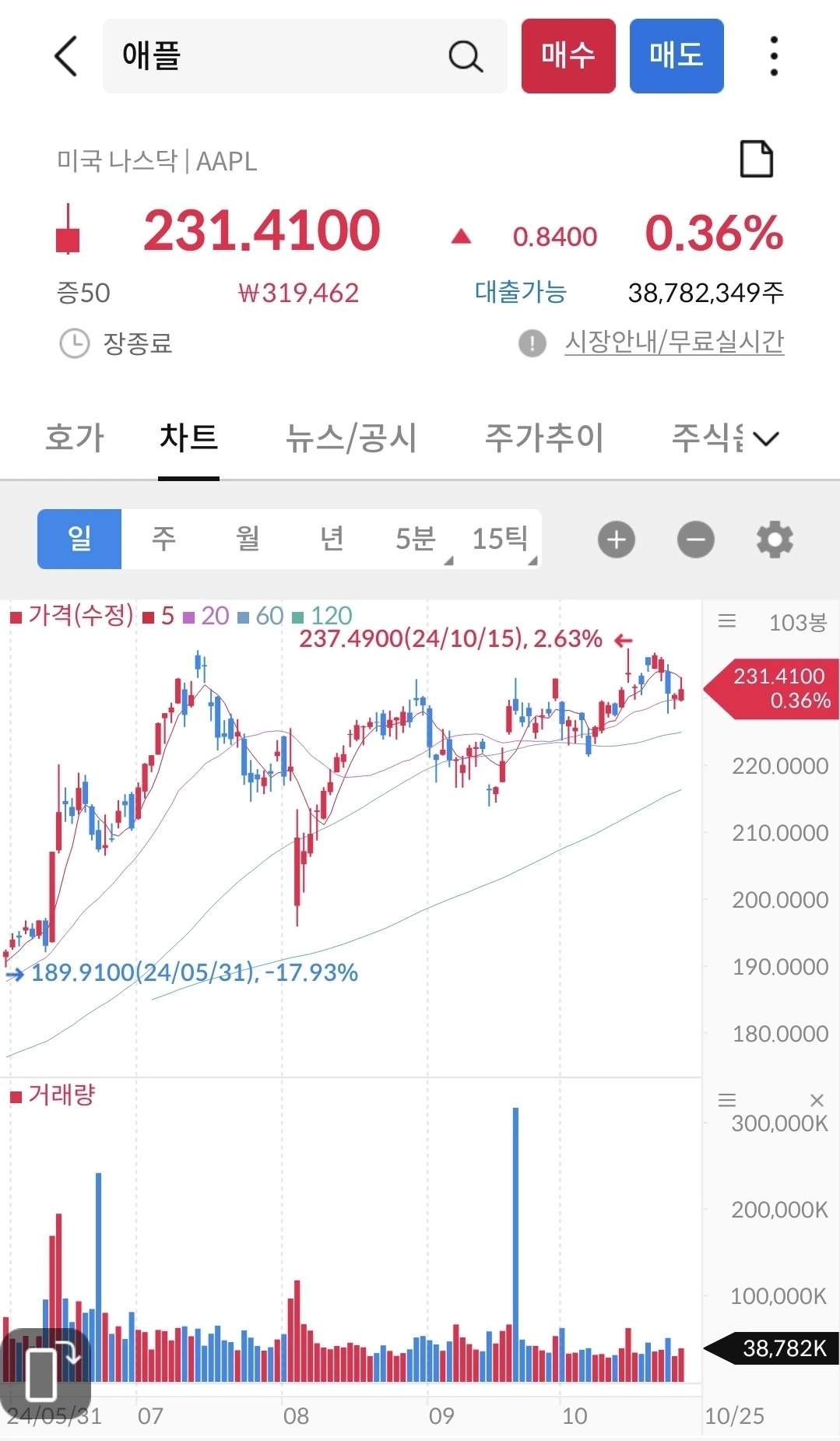 나스닥 시가총액 1위기업이다. 이번 주에는 엔비디아가 바짝 붙어 왔지만, 아직은 1위 자리를 지키고 있다. 이번 주에 소폭 하락이 있었지만, 큰 그림으로는 꾸준히 우상향 중이다. 애플도 지켜 보자.