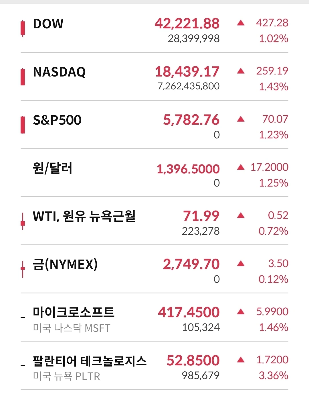 오늘 미국 시장은 활황 중